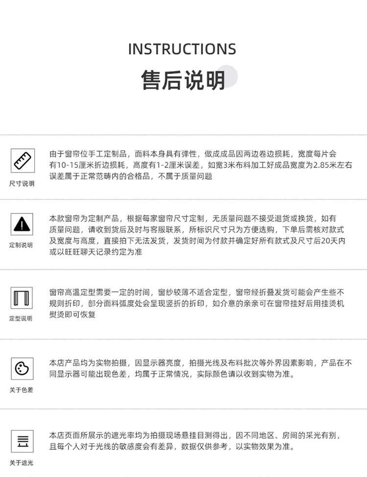| Especificaciones | [corte cero de tela] a partir de 2 metros, [pieza entera de tela] más de 60 metros, perforación / procesamiento de pliegues coreanos / metro [enviar finalización de alta temperatura], 3,1 metros de altura sin empalme (perforación de productos terminados con descuento coreano) [consultar primero al servicio al cliente], muestras de cabello personalizadas en toda la casa - instalación de medición nacional [consultar primero al servicio al cliente] |