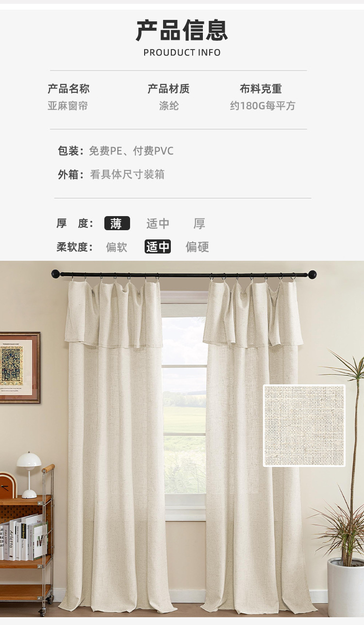 | Especificaciones | 52 * 63in (132 * 160cm) en una pieza, 52 * 84in (132 * 213cm) en una pieza, 52 * 95in (132 * 241cm) en una pieza, 52 * 108in (132 * 274cm) en una pieza |