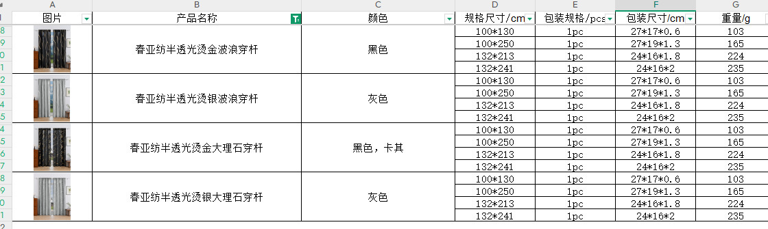 | Especificaciones | 100 * 130 cm (una pieza de perno), 100 * 250 cm (una pieza de perno), 132 * 213 cm (una pieza de perno), 132 * 241 cm (una pieza de perno) |