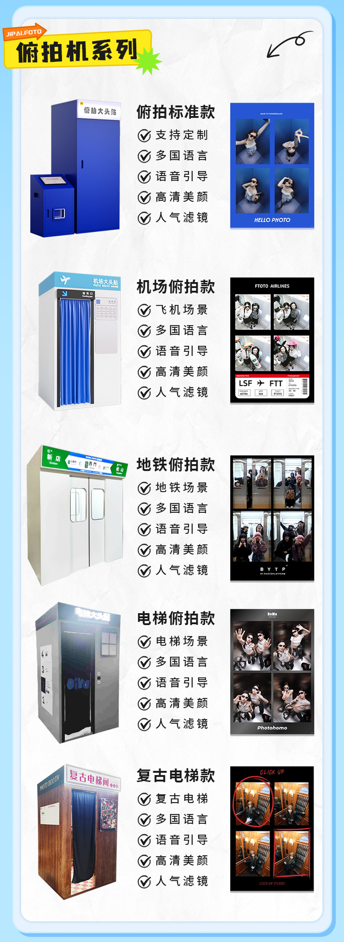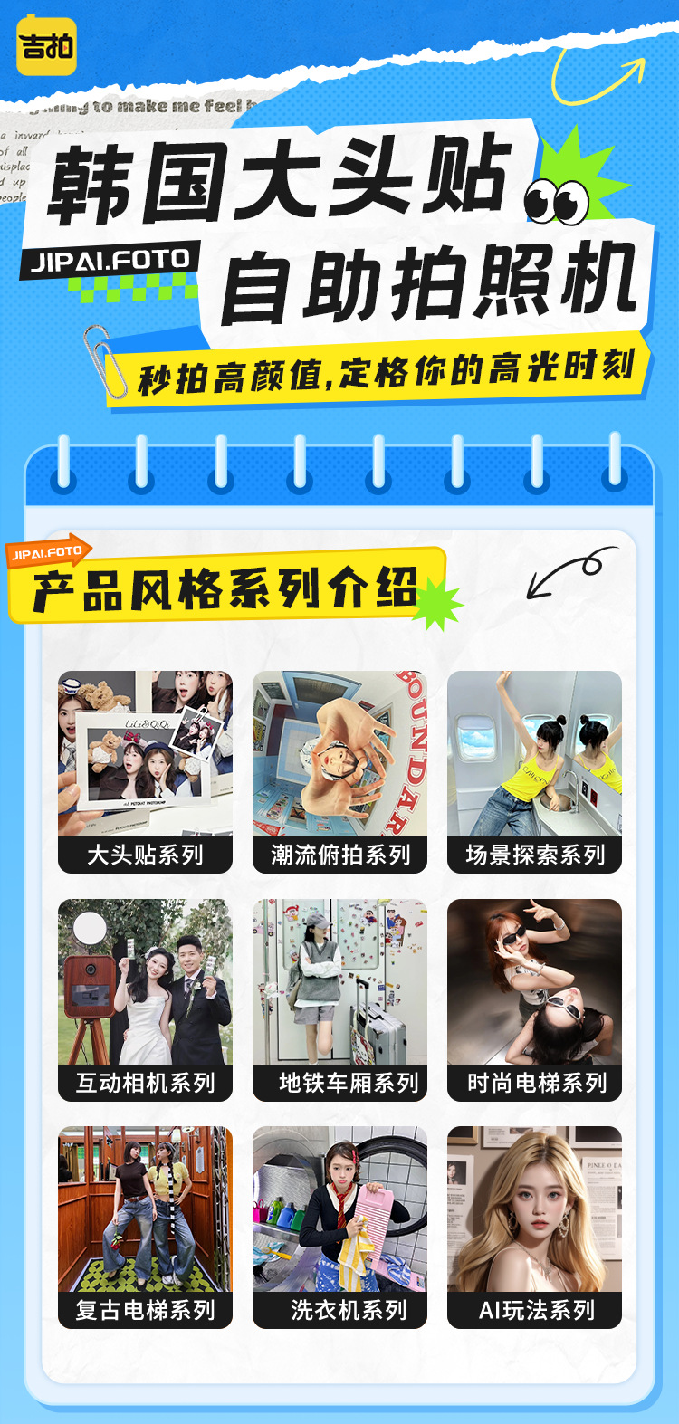 | Especificaciones | Pegatinas de cabeza grande de inmersión en ascensor, pegatinas de cabeza grande de almacén de aviones, pegatinas de cabeza grande de inmersión en metro, pegatinas de cabeza grande de inmersión en plata, máquina de integración de pegatinas de cabeza grande de lujo ligero, máquina de integración de pegatinas de cabeza grande retro, máquina de fotografía clásica de pegatinas de cabeza grande (personalizable), máquina de Fotografía de pegatinas de cabeza grande de elevación (personalizable), máquina de fotografía de cabeza grande amarilla de pegatinas de fotografía, pegatinas de cabeza grande de fotografía naranja, máquina estándar azul, pegatinas de cabeza grande de inmersión convencionales, papel de fotografía profesional de belleza, versión de pegatinas de cabeza grande interactiva (personalizable), versión de lujo de cámara interactiva diaria (personalizable) |