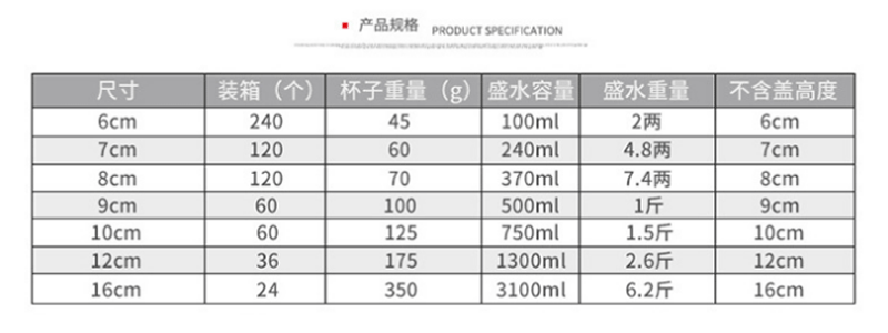 | Capacidad | 6cm sin tapa (100ml), 7cm sin tapa (200ml), 8cm sin tapa (350ml), 9cm sin tapa (500ml), 10cm sin tapa (700ml), 12cm sin tapa (1300ml), 8cm con tapa (350ml), 9cm con tapa (500ml), 10cm con tapa (700ml), 12cm con tapa (1300ml), 8cm con tapa, 9cm con tapa, 10cm con tapa, 12cm con tapa, 16cm con tapa (3100ml), 16cm sin tapa (3100ml) |