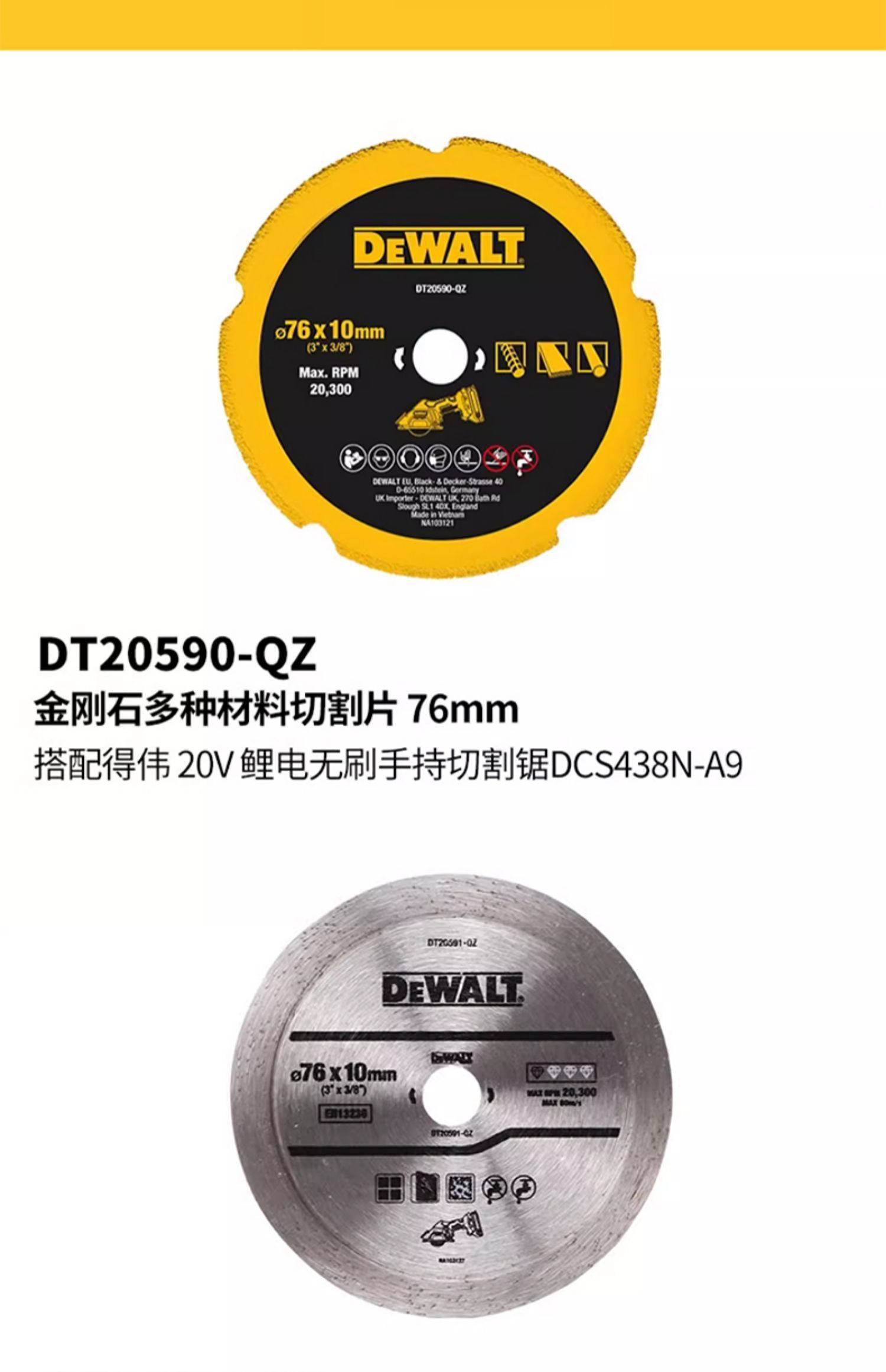 Hoja de corte de varios materiales de diamante / dt20590 - qz, hoja de corte de azulejos de diamante / dt20591 - qz, hoja de corte de resina (3 paquetes) dt20592 - Qz