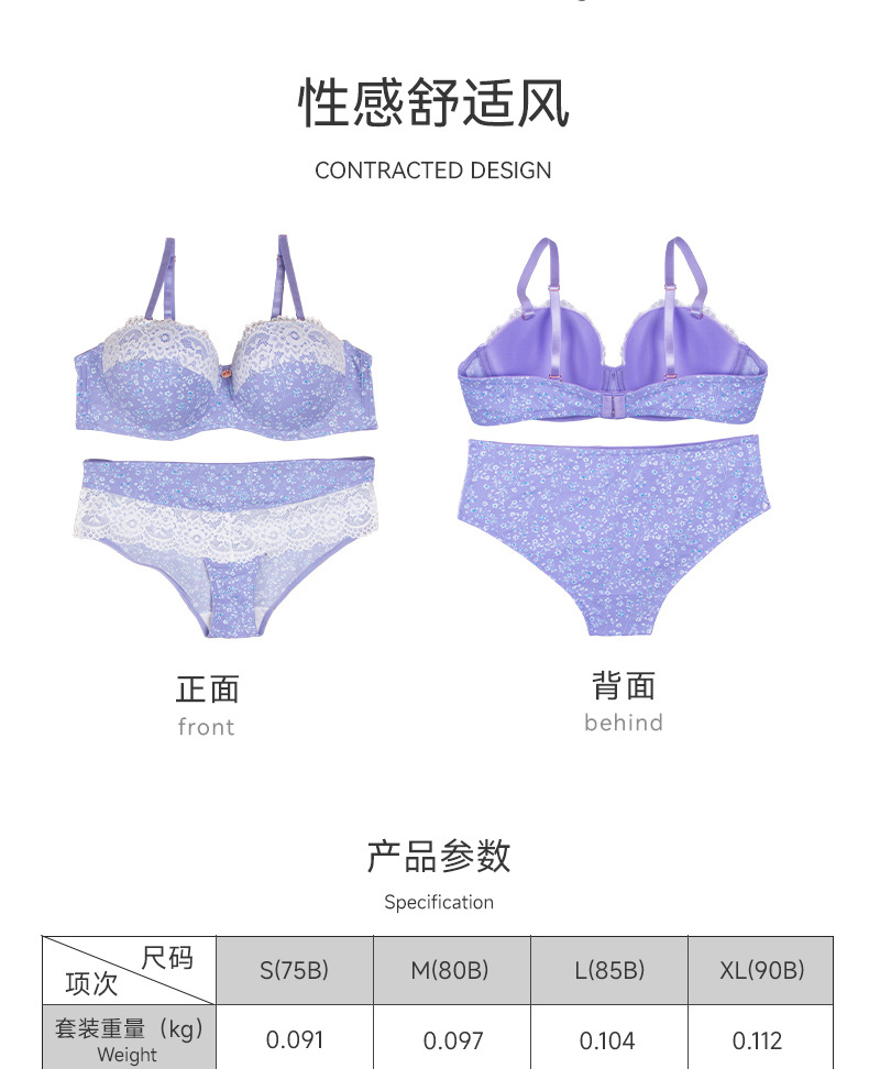 | Color | Traje de flores de fondo blanco, traje de ramas de flores azules y moradas, sujetador único de flores de fondo blanco, sujetador único de ramas de flores azules y moradas, calzoncillos de flores de fondo blanco, calzoncillos de ramas de flores azules y moradas |
