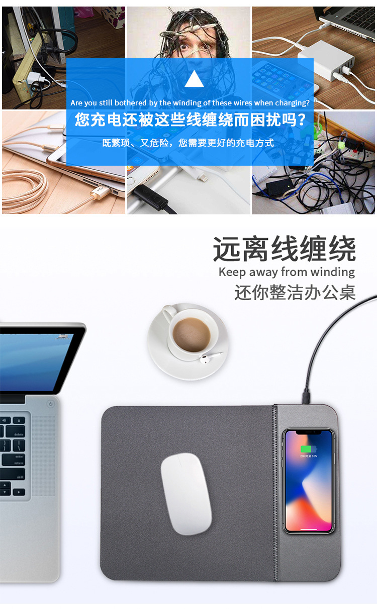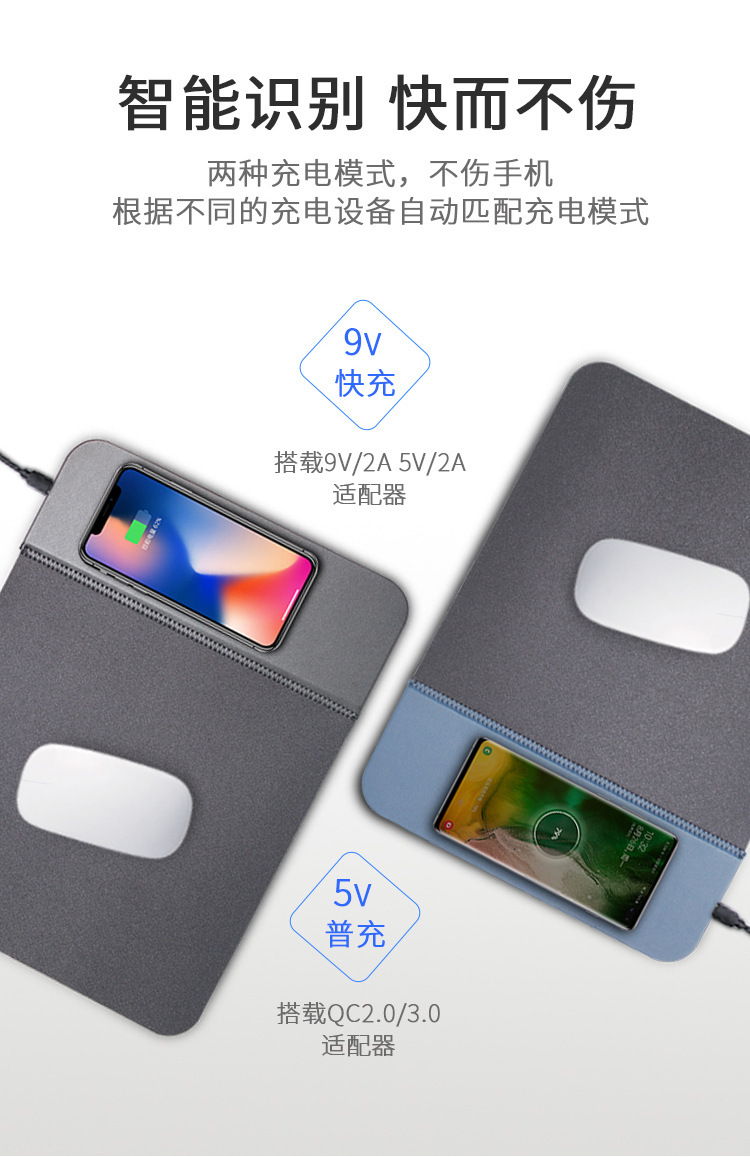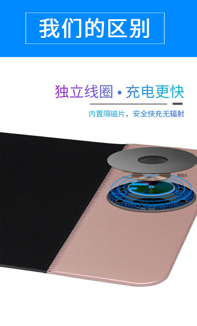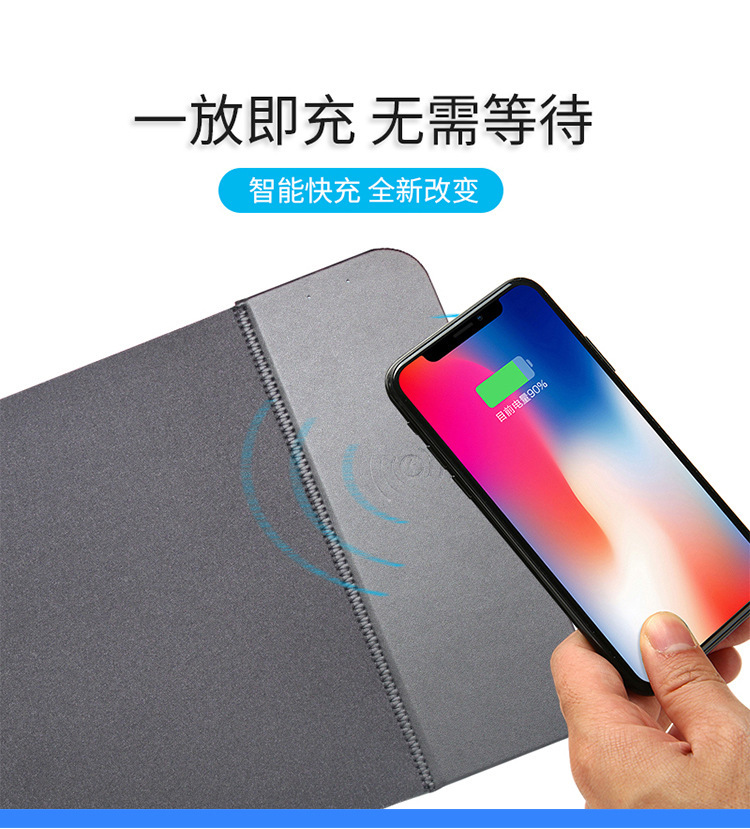 Alfombrilla de escritorio para computadora transfronteriza, carga rápida para teléfono móvil, carga inalámbrica plegable, oficina multifuncional, hogar, alfombrilla de ratón de cuero creativo