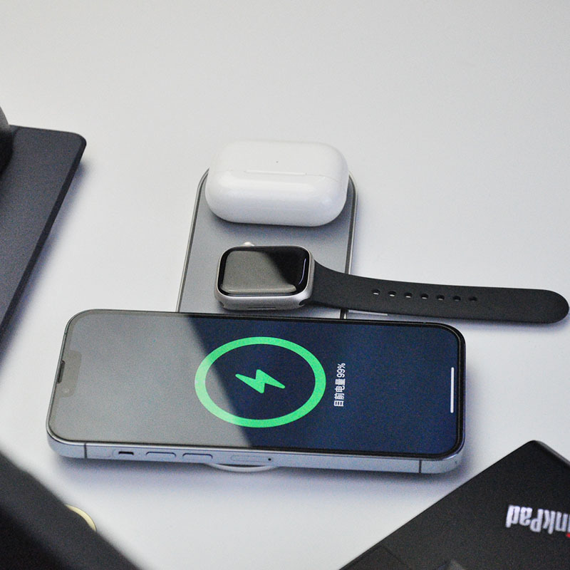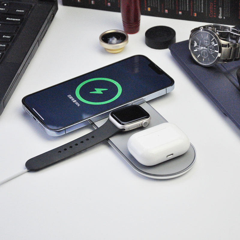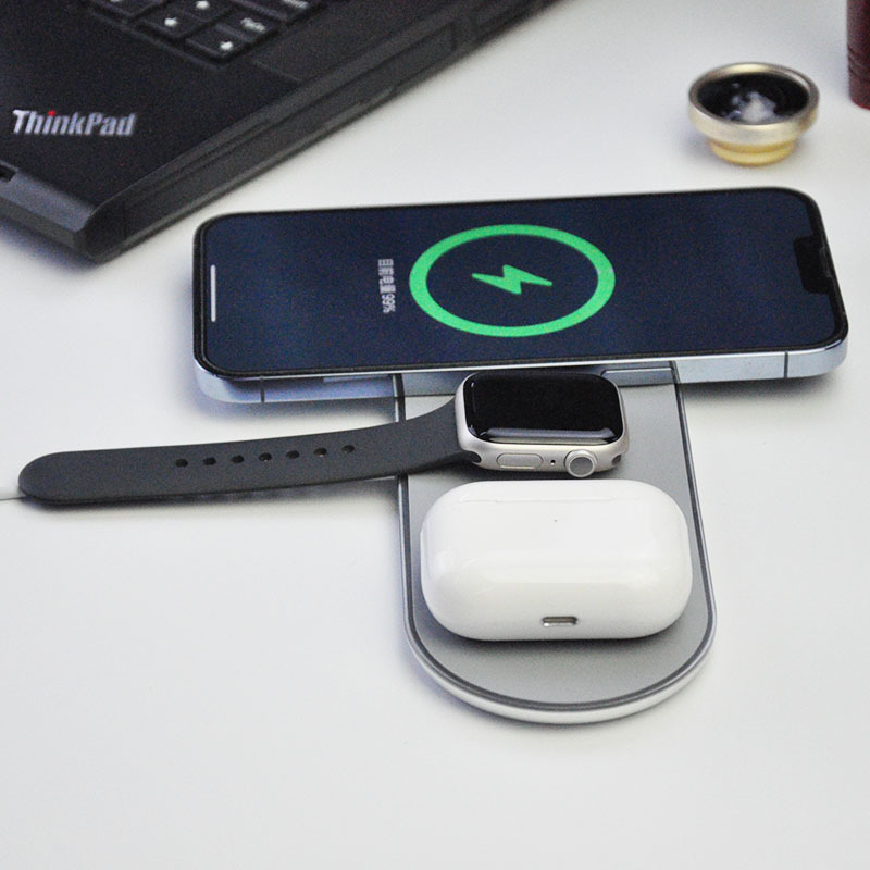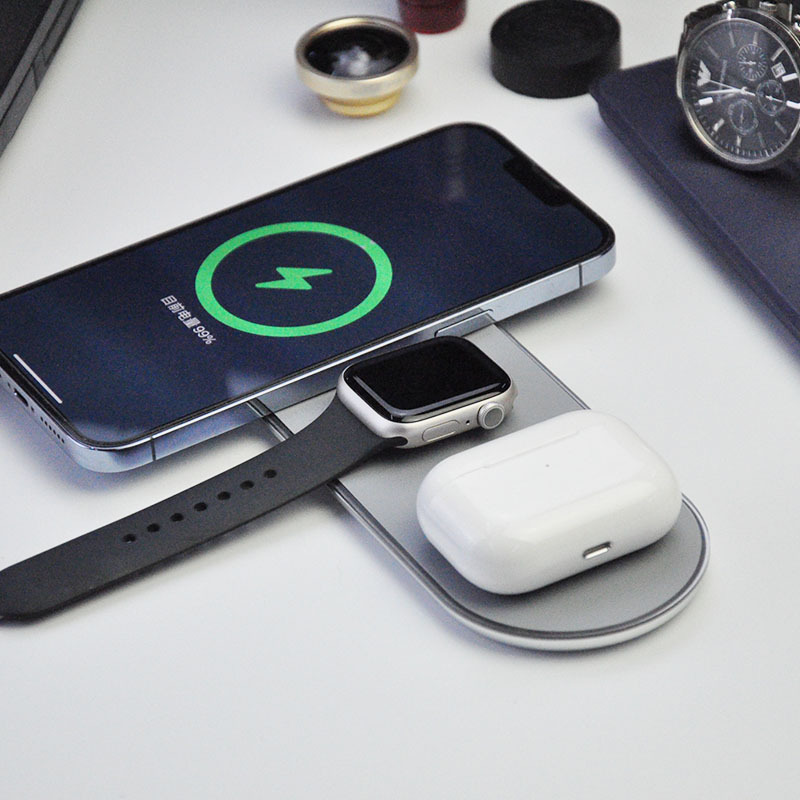 Cargador inalámbrico, cargador bilateral, adecuado para teléfonos móviles Apple Android, auriculares con función inalámbrica, reloj, universal tres en uno