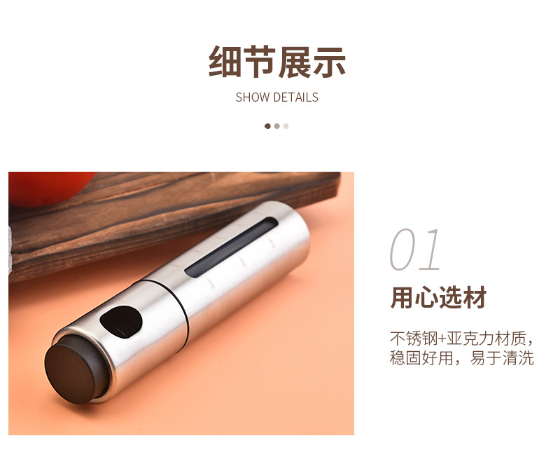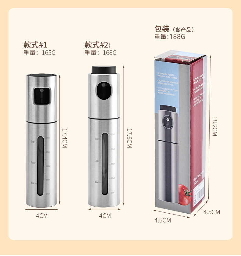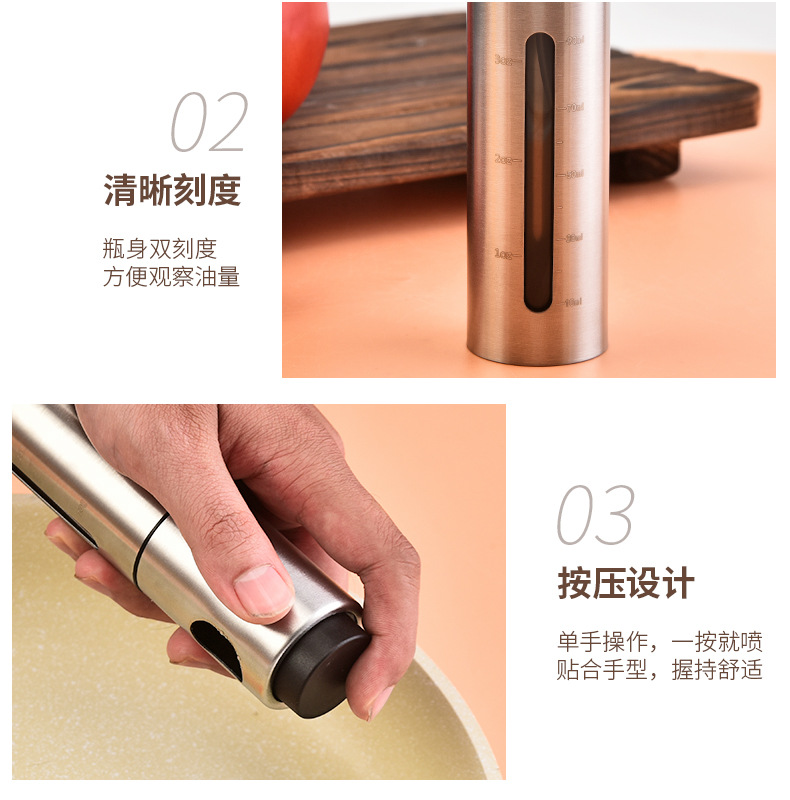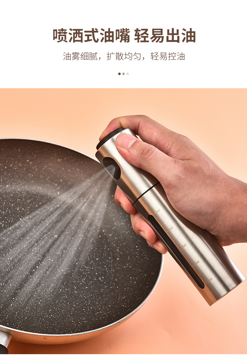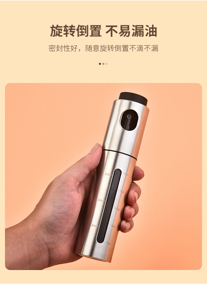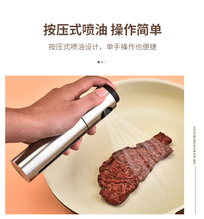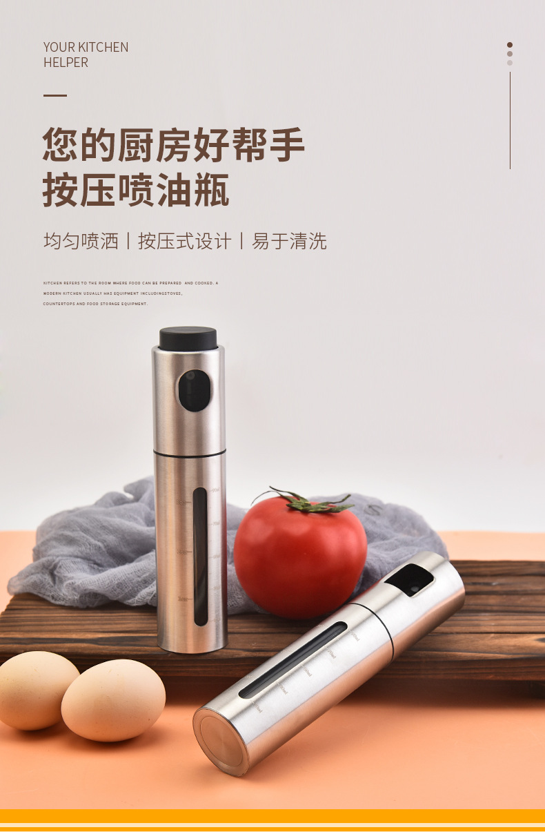 Botella de spray de aceite atomizado tipo empuje integrada de acero inoxidable para el hogar, botella de aceite de oliva, botella de spray de aceite para barbacoa de cocina, venta al por mayor