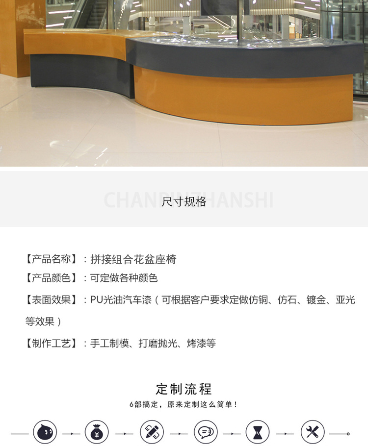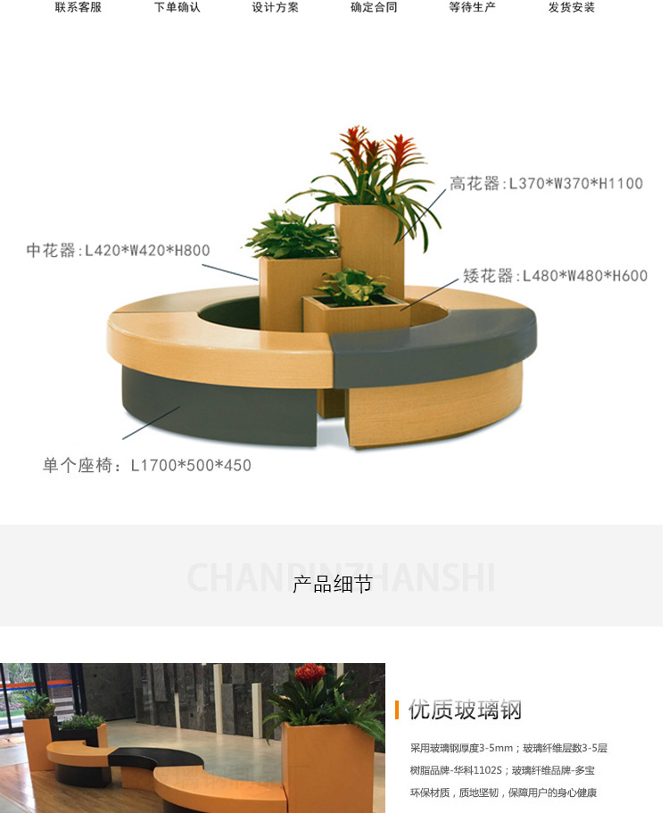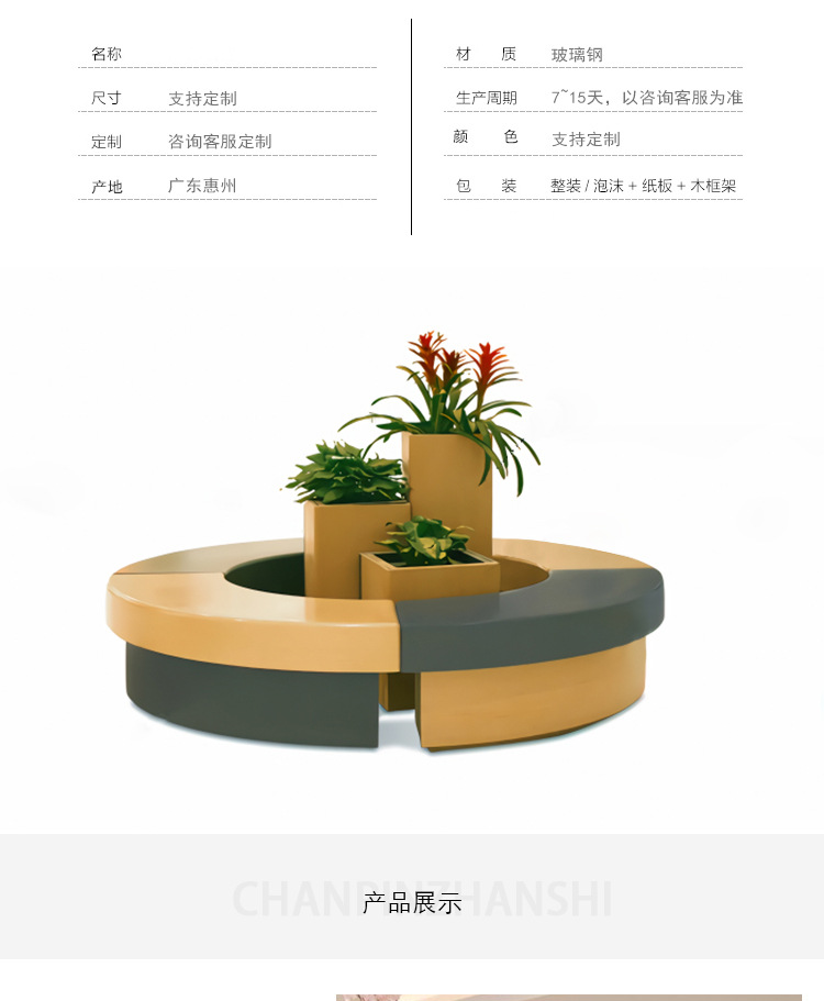 | Tamaño | El diámetro exterior de la silla combinada en forma de s es de 2,5 metros con macetas, y el diámetro exterior de la silla combinada en forma de s es de 2 metros con macetas. |