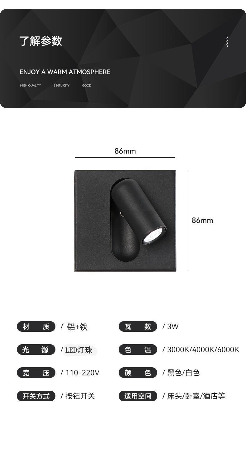 | Número de artículo | Lámpara de pared del dormitorio del hotel de cabecera LED 86 |