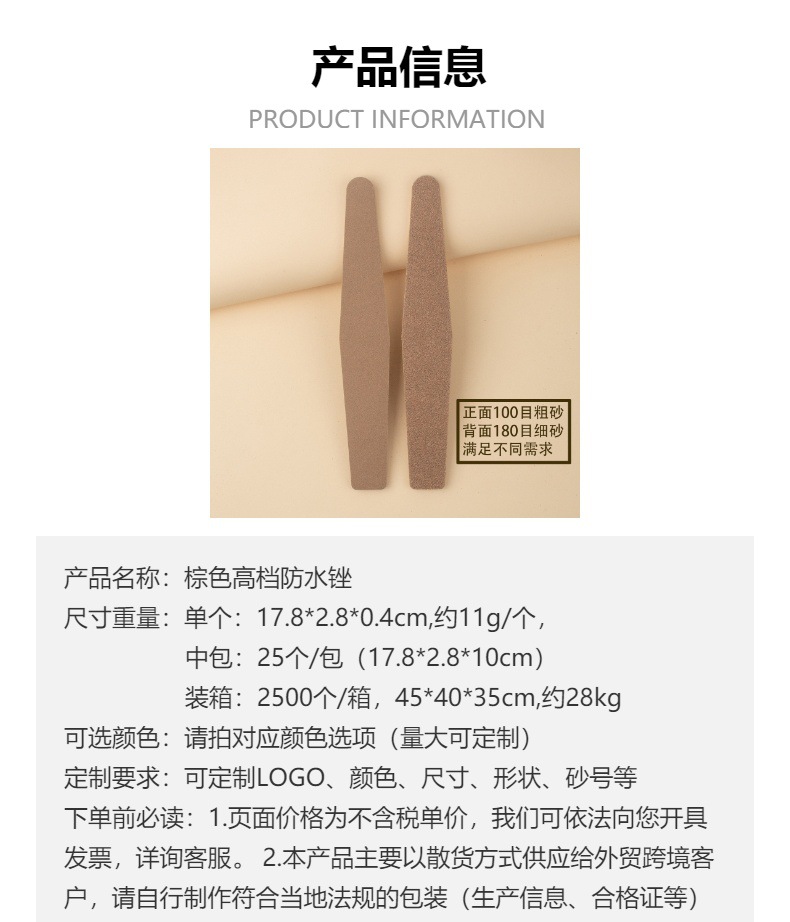 Especial transfronterizo para Moglad medio mes lima de uñas 100/180 Reparación de uñas de doble cara tira de frote esmerilado