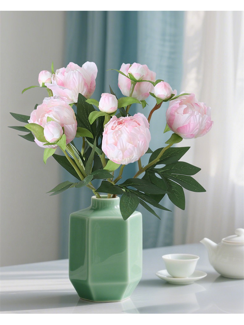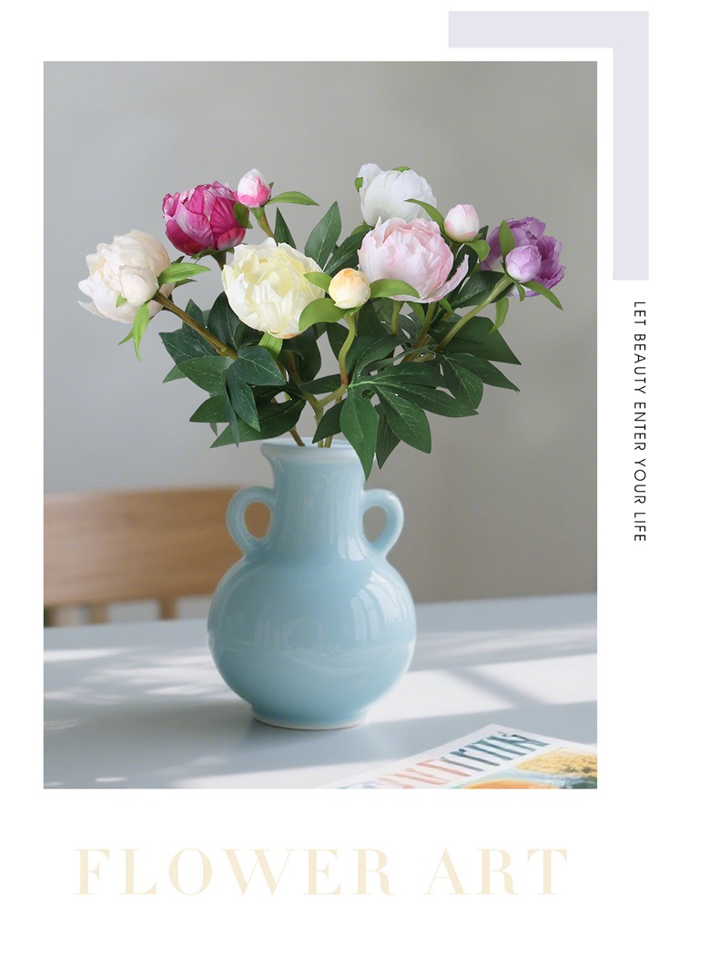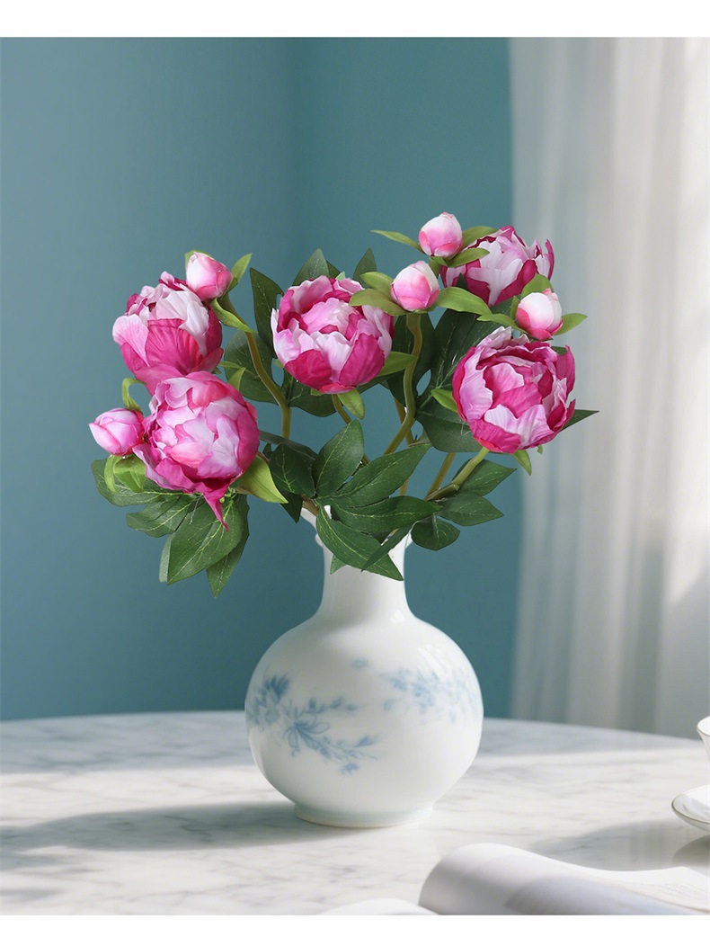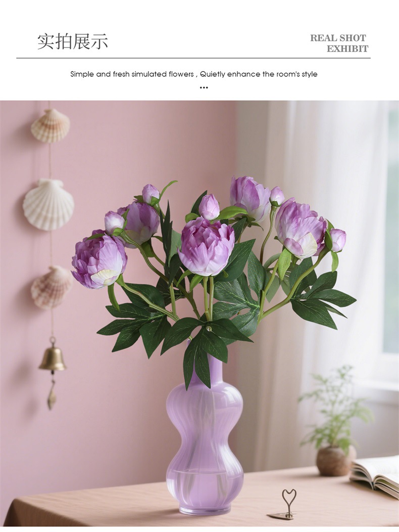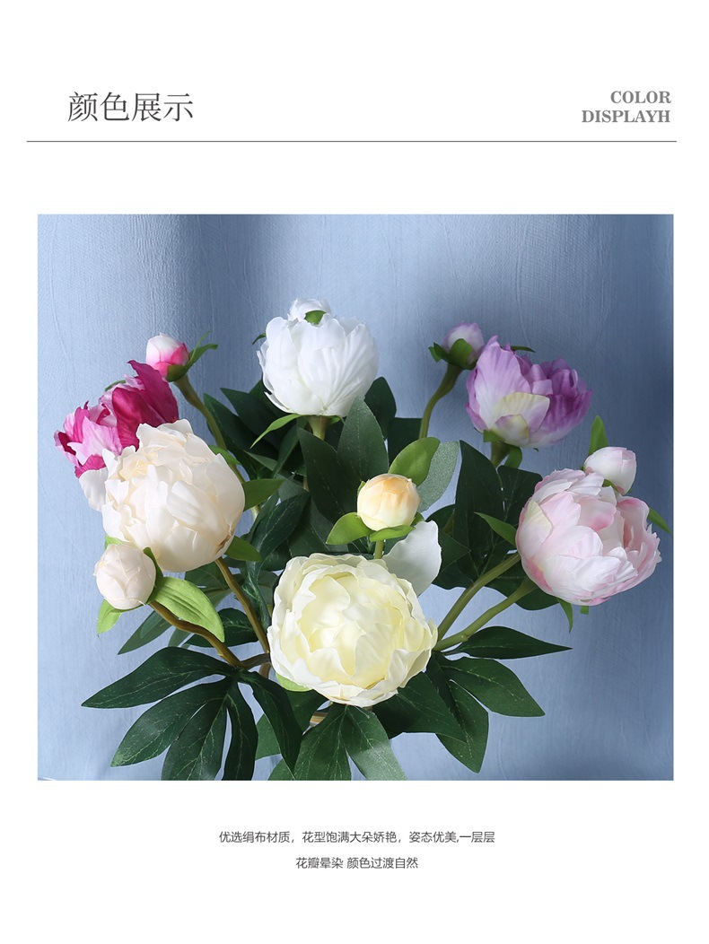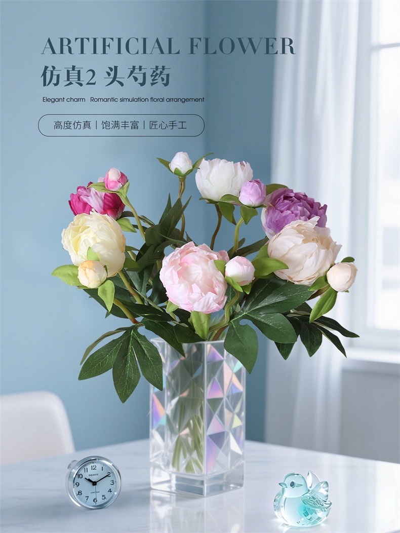 Mini 2 cabezas de estilo europeo simulación de peonía boda casa decoración suave arreglo floral colocación de flores de seda arte floral simulación peonía