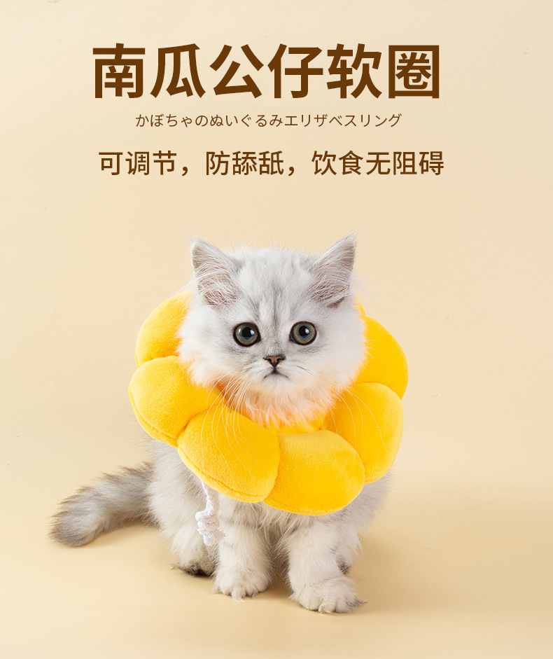 Gato Elizabeth anillo collar de flores de sol tela suave perro cubierta de cabeza anillo de vergüenza collar de cuello esterilización anti-lagrapatura collar