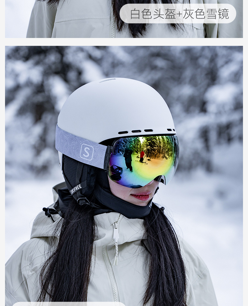 SKIFREE S0 casco de esquí equipo de esquí anticolisión hombre y mujer cálido casco de nieve de doble placa espejo de nieve profesional para niños