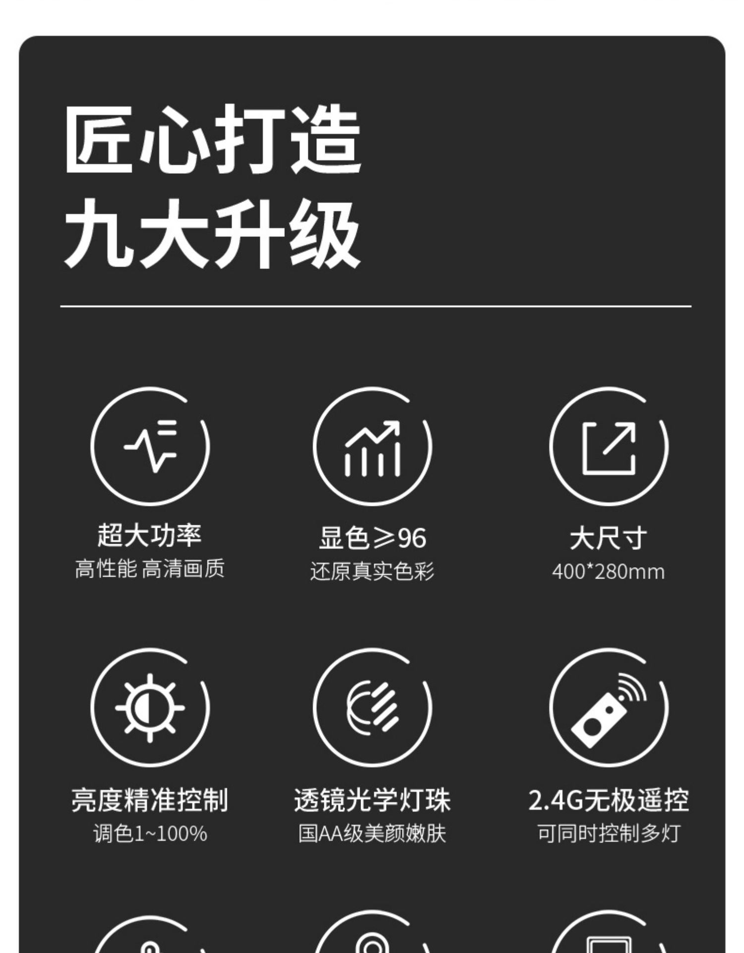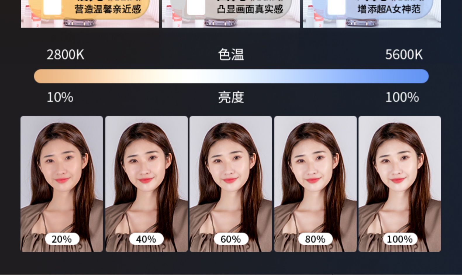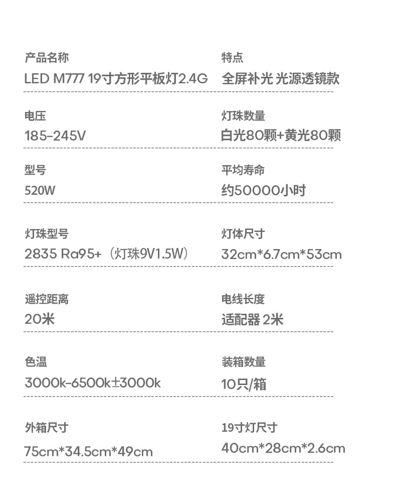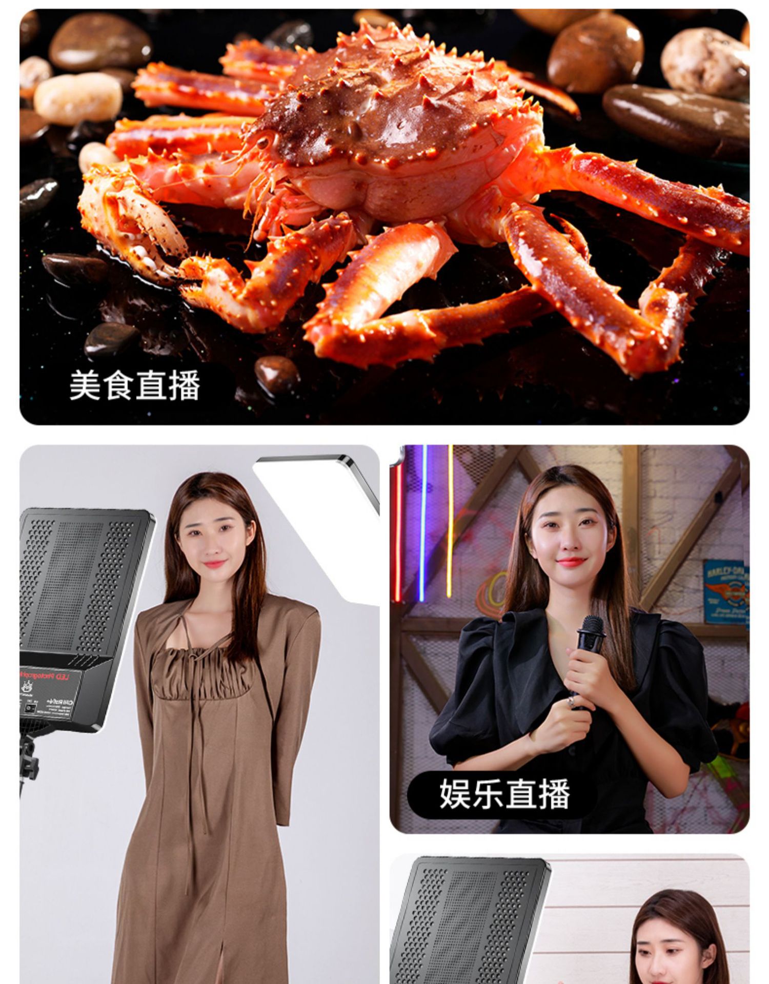 | ámbito de aplicación principal | Transmisión en vivo, fotografía, comida, fotografía de joyas, etc. |