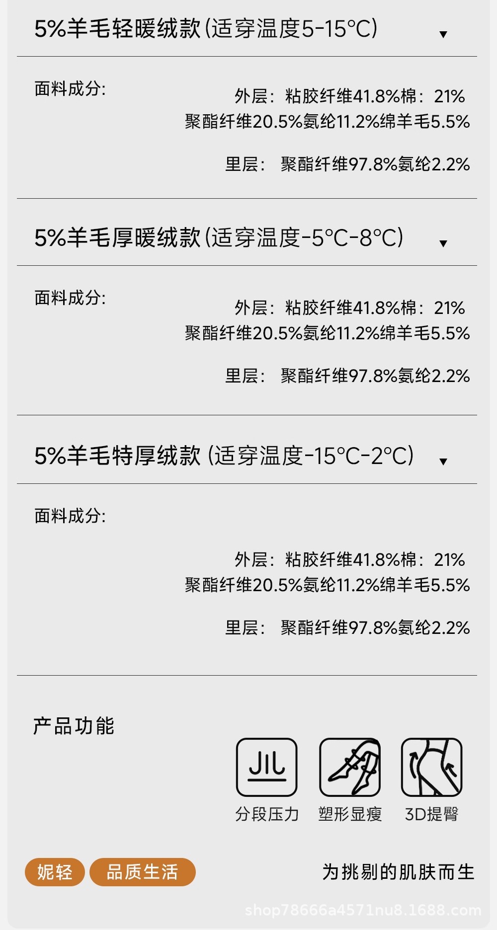 | Función | Levantar las caderas, mantenerse caliente y adelgazar las piernas |
