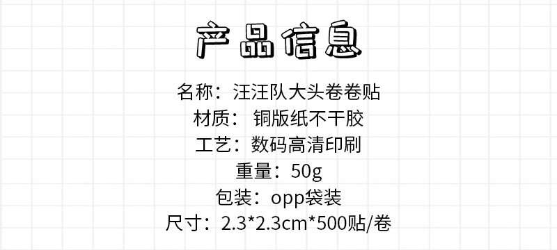 | Color | Cabeza QQ del equipo Wang Wang [500 pegatinas / volúmenes] |