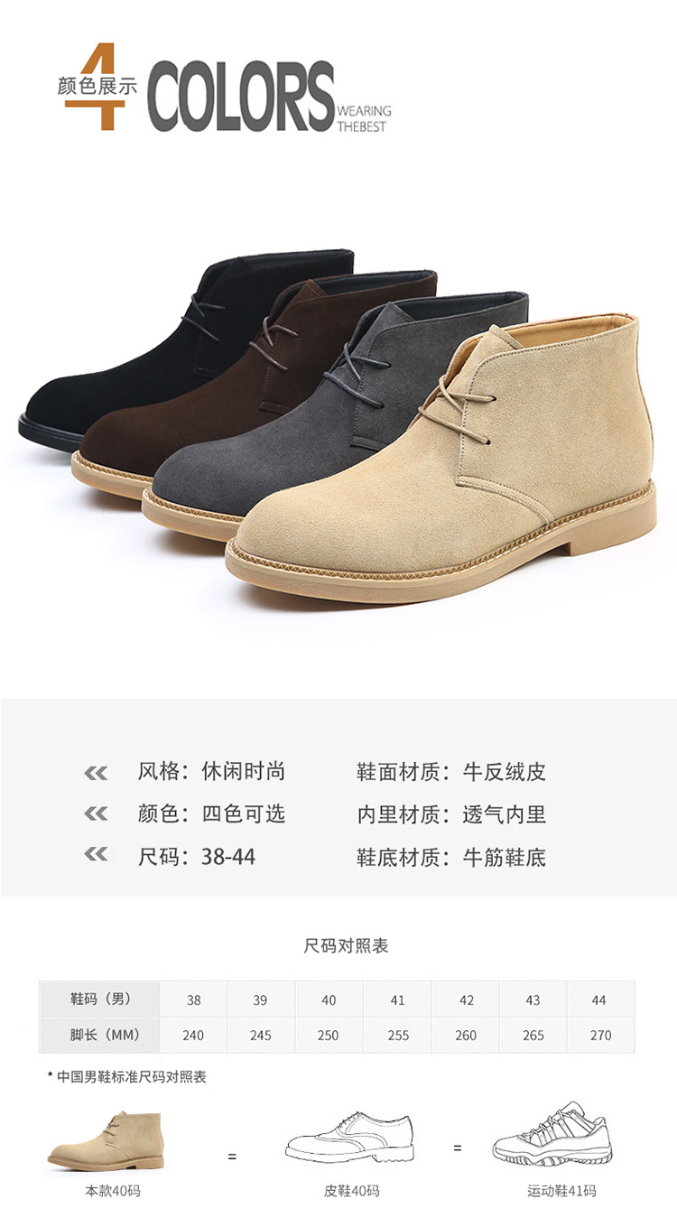 | Material superior del zapato | Terciopelo invertido de vaca (piel mate) |