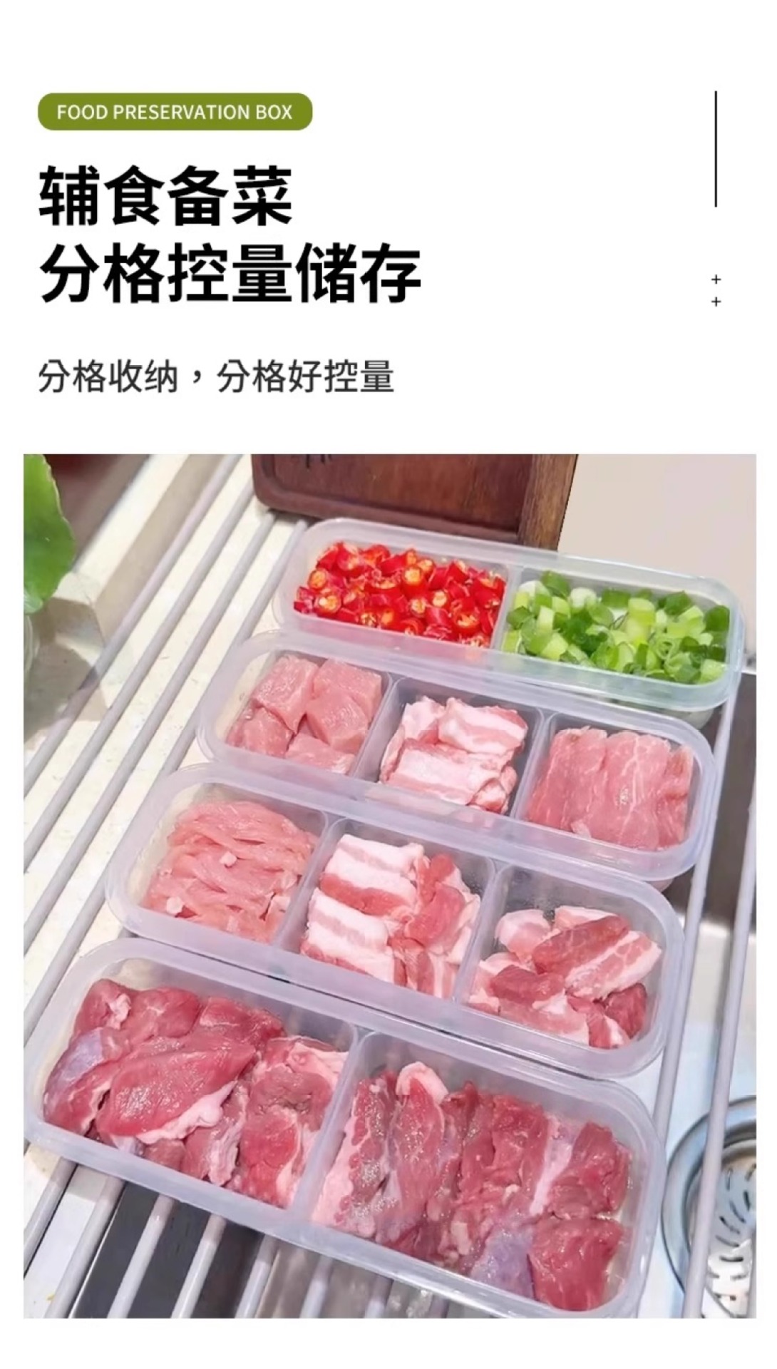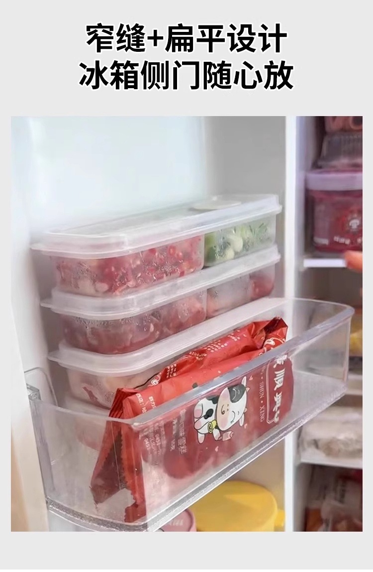Refrigerador de hendidura estrecha caja de almacenamiento de carne congelada caja de almacenamiento de alimentos congelados caja de embalaje dividida para el hogar