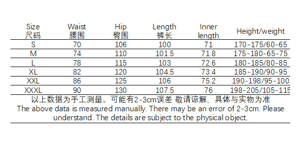| Tamaño de los pantalones | S,M,L,XL,2XL,3XL |