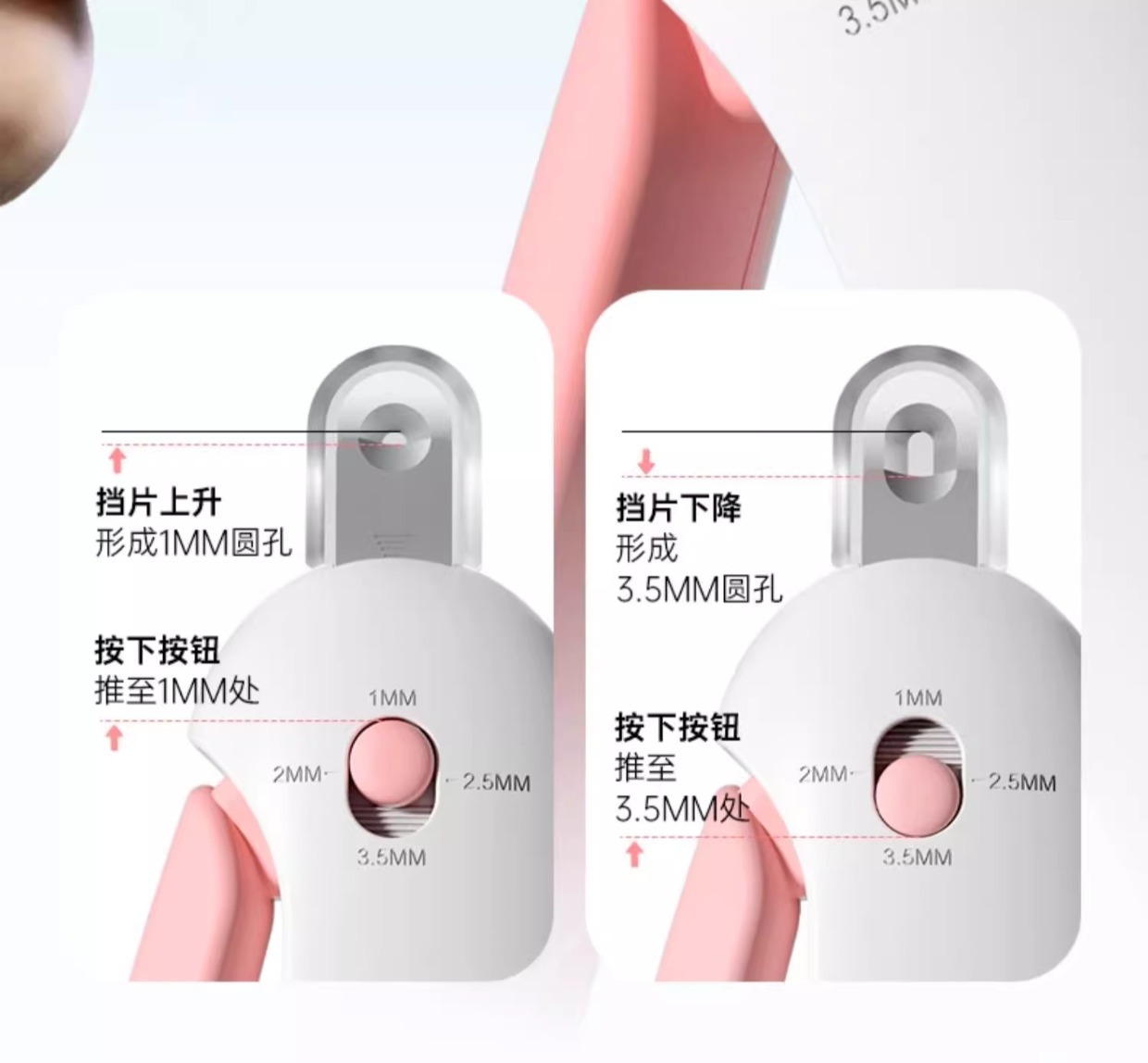| Color | Tijeras de empuje azules [el tamaño del agujero se puede ajustar de pequeño a grande], tijeras de empuje rosas [el tamaño del agujero se puede ajustar de pequeño a grande] |