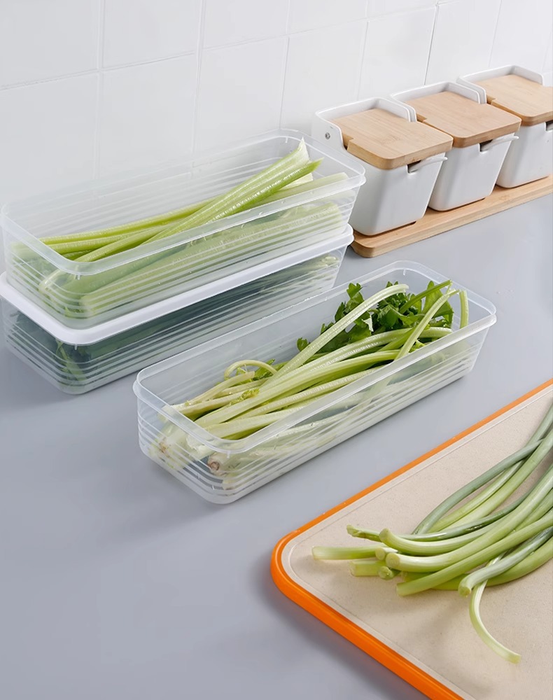 Caja de preservación fresca cebolla de grado alimenticio cilantro cilantro de raíz entera de arroz de arroz colgado de fideos huevos caja de almacenamiento y acabado especial para refrigerador