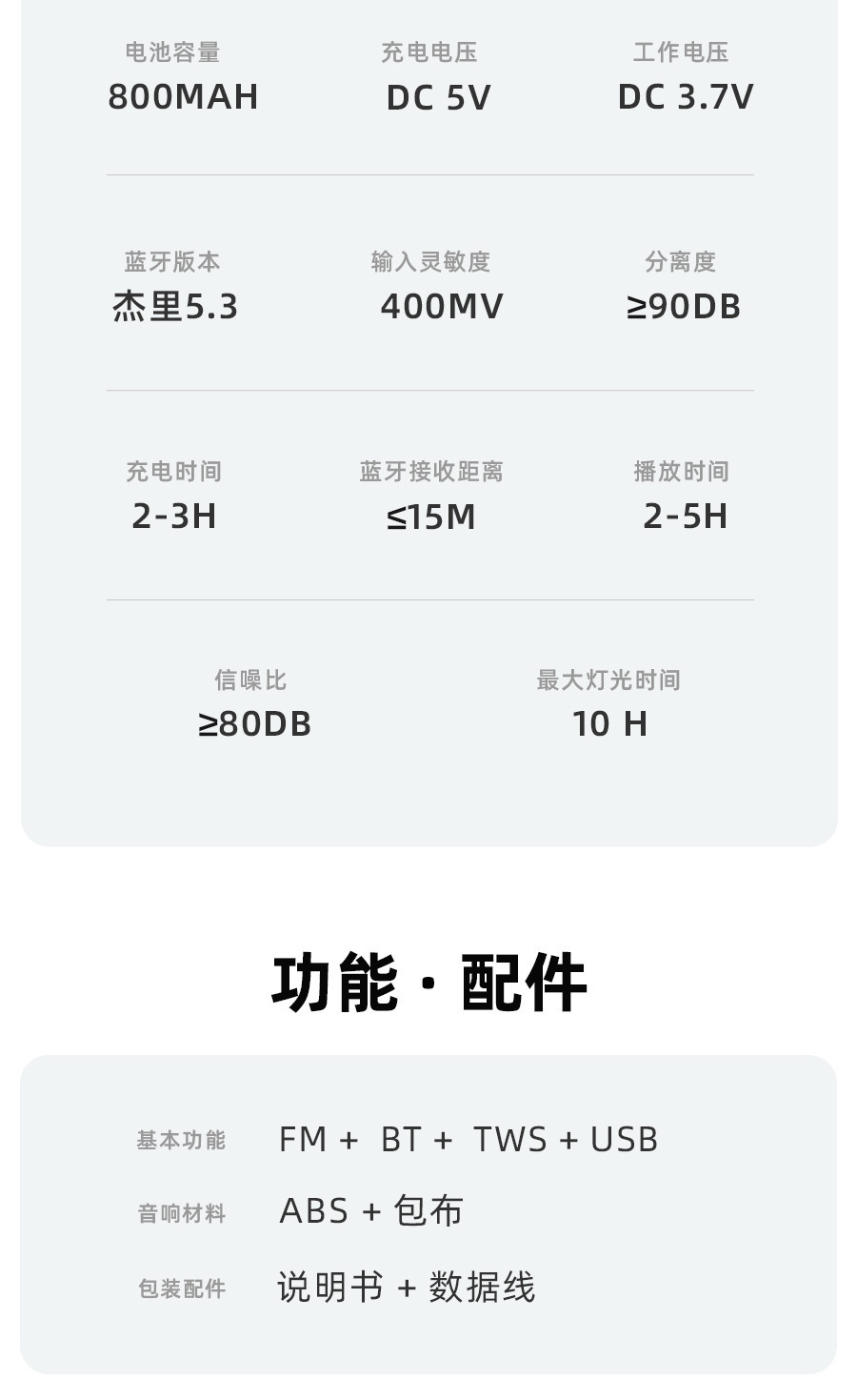 | Capacidad de la batería incorporada | 500mah - 800mah (incluido) |
