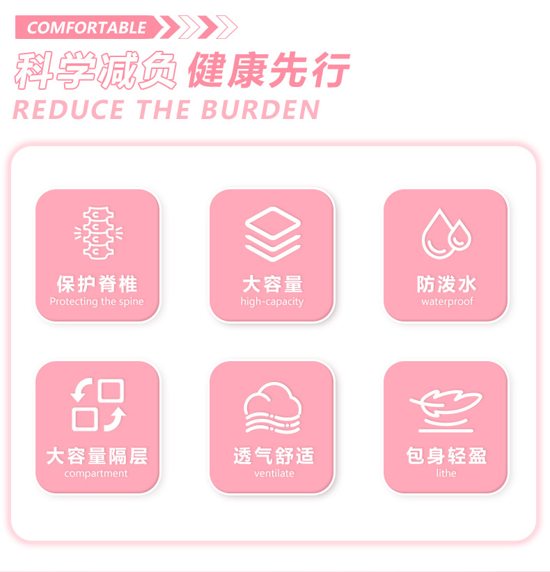 26 nuevos estudiantes de secundaria secundaria mochila de gran capacidad para niñas para reducir la carga de los estudiantes de primaria 3 - 6 - 9 grados mochila escolar