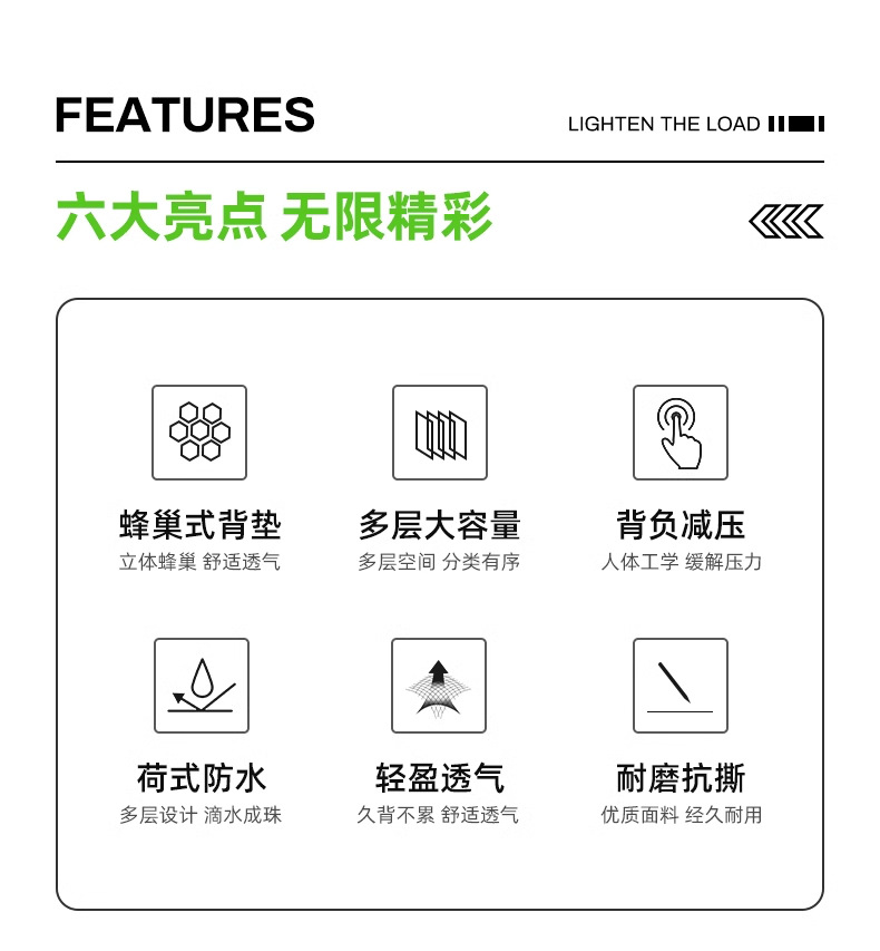 | Función | Transpirable, resistente al desgaste, reducción de carga, protección de la cresta |