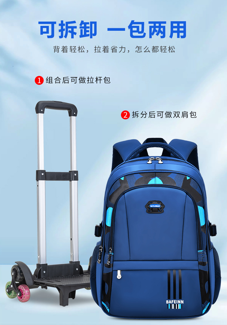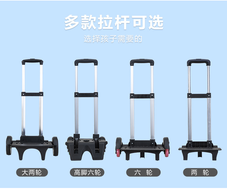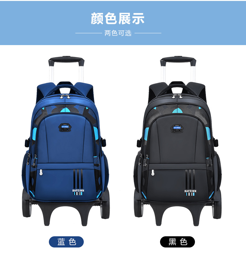 | Color | Mochilas escolares individuales azules - sin tirantes, mochilas escolares azules + tirantes de dos ruedas, mochilas escolares azules + tirantes de seis ruedas de educación superior, mochilas escolares azules + tirantes de dos ruedas de actualización, mochilas escolares individuales negras - sin tirantes, mochilas escolares negras + tirantes de seis ruedas, mochilas escolares negras + tirantes de seis ruedas de educación superior, mochilas escolares negras + tirantes de dos ruedas de actualización |
