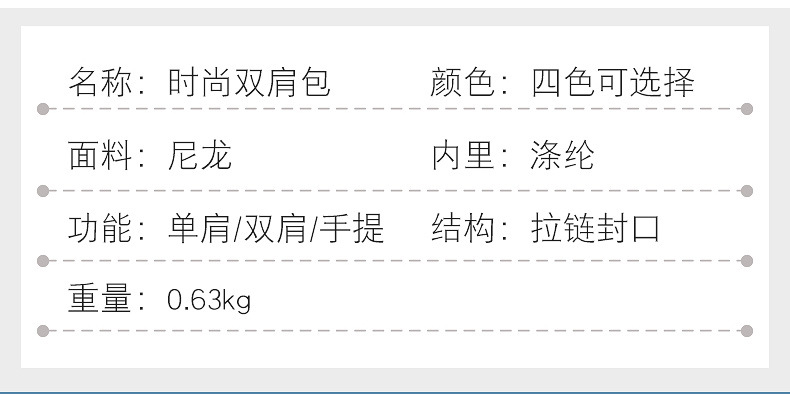 | Color | Mochila única púrpura sin colgante,Conjunto de cuatro piezas púrpura sin colgante,Bolso púrpura del tutorial,Traje de bolsa de comida púrpura,Mochila única rosa sin colgante,Conjunto rosa de cuatro piezas sin colgante,Bolsa tutorial rosa,Traje de bolsa de comida rosa,Mochila única azul sin colgante,Conjunto azul de cuatro piezas sin colgante,Bolso tutorial azul,Traje de bolsa de comida azul,Mochila única negra sin colgante,Conjunto de cuatro piezas negro sin colgante,Bolso tutorial negro,Negro traje de bolsa de comida |