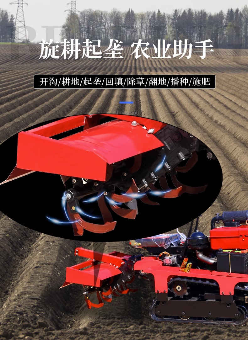 Máquina de manejo pastoral de agua y sequía de tipo montado micro-cultivador de arado rotativo de cresta máquina integrada