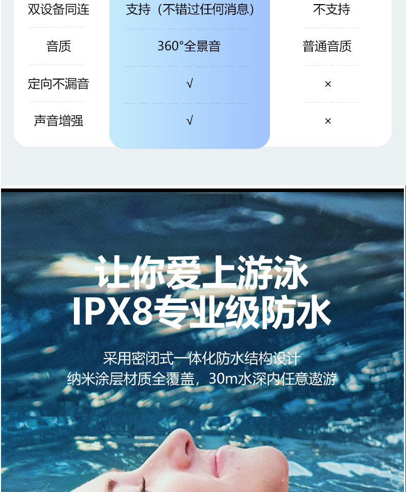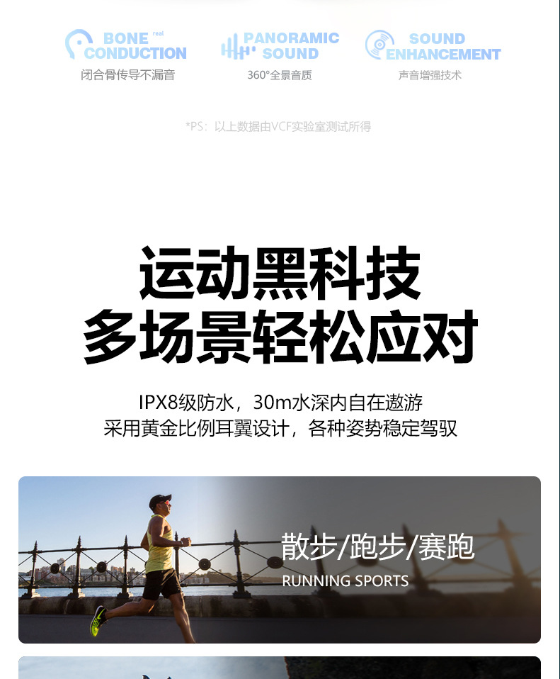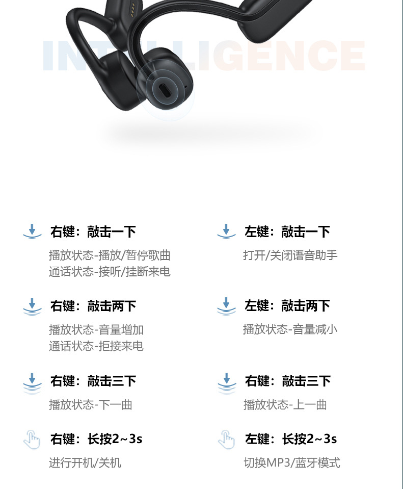 | Función | Impermeable, carga inalámbrica, conducción ósea, función de llamada, soporte musical |