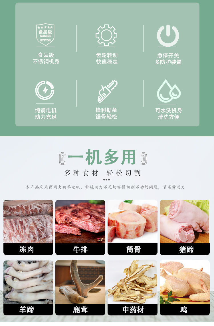 | Alias | Equipo de corte de manitas de cerdo congeladas de pie grande Máquina de corte de costillas de res eléctrica Máquina de sierra de hueso de escritorio comercial |