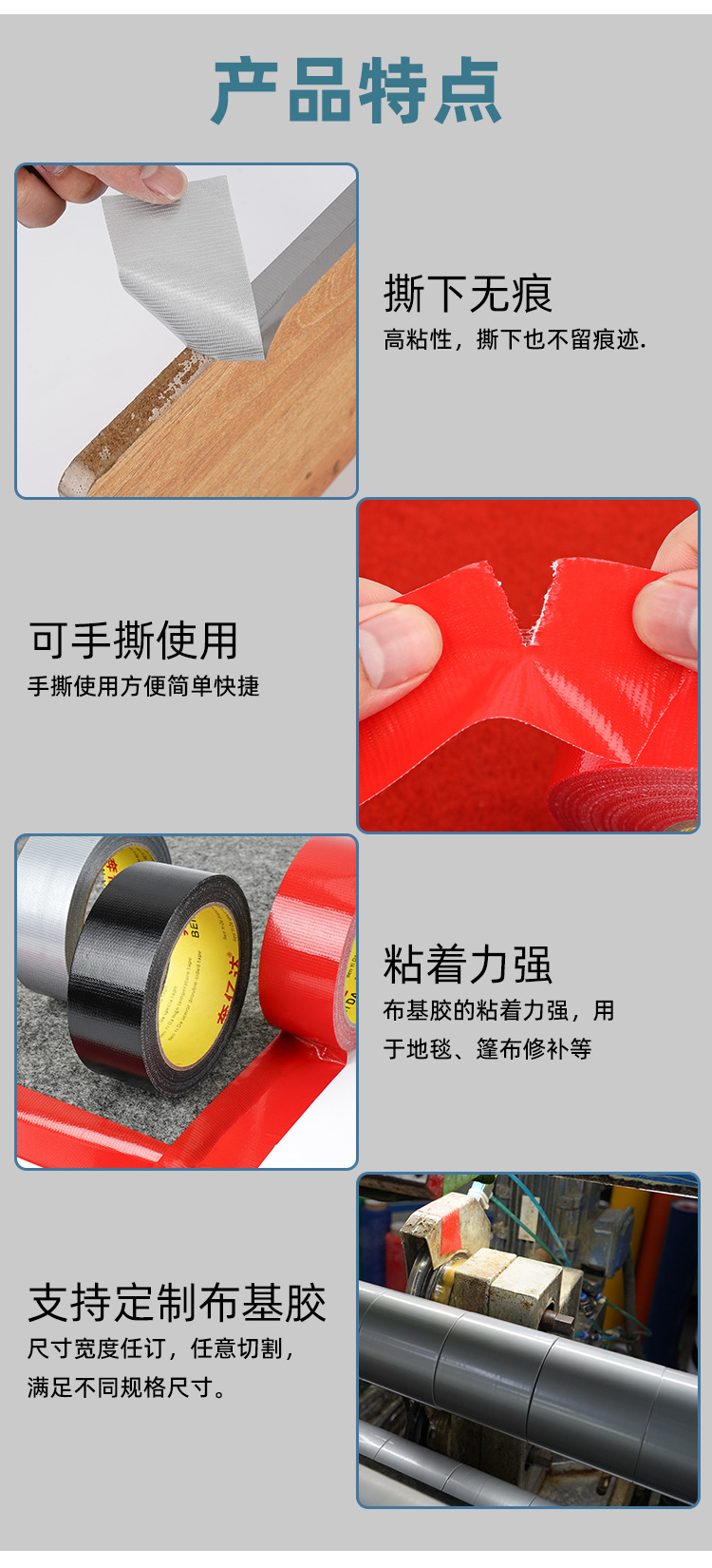 Cinta de tela a base de tela de alta viscosidad de color, cinta de tela fácil de rasgar y sin costuras, cinta de mantillo impermeable, cinta de tela de malla de decoración
