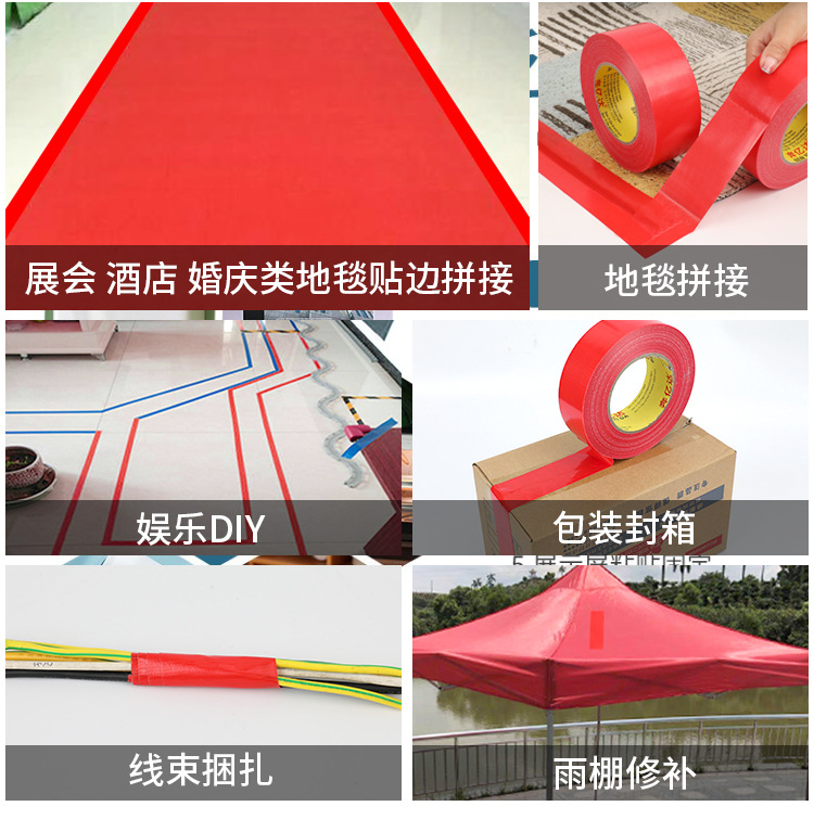 Cinta base de tela fuerte, alta viscosidad, cinta adhesiva para pisos de exhibición de una cara, película de mantillo, fabricante de pegamento para alfombras, cinta al por mayor, sin residuos