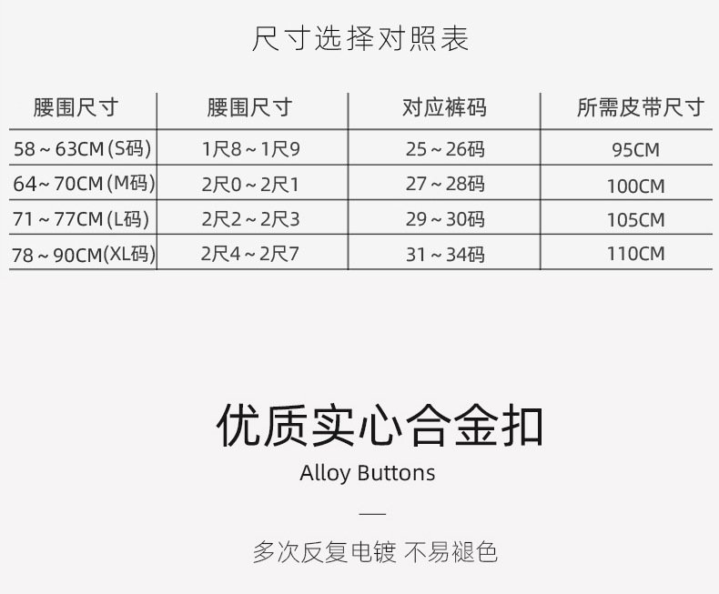 | Longitud (cm) | 95cm,100cm,105cm,110cm |