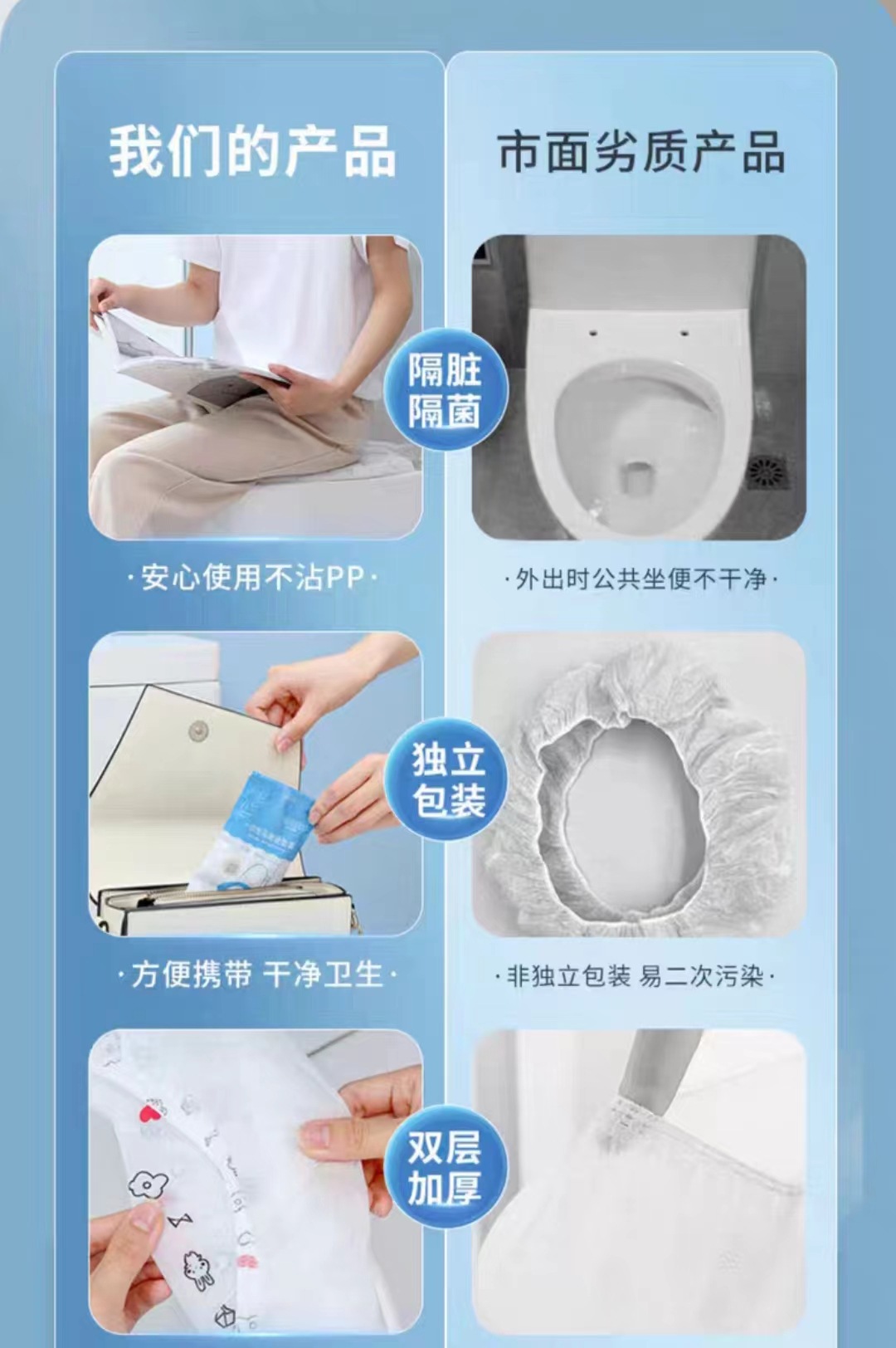 | Colores | Estuche de inodoro desechable impreso,Funda de inodoro desechable en blanco puro,Impresión de cojín de inodoro desechable |