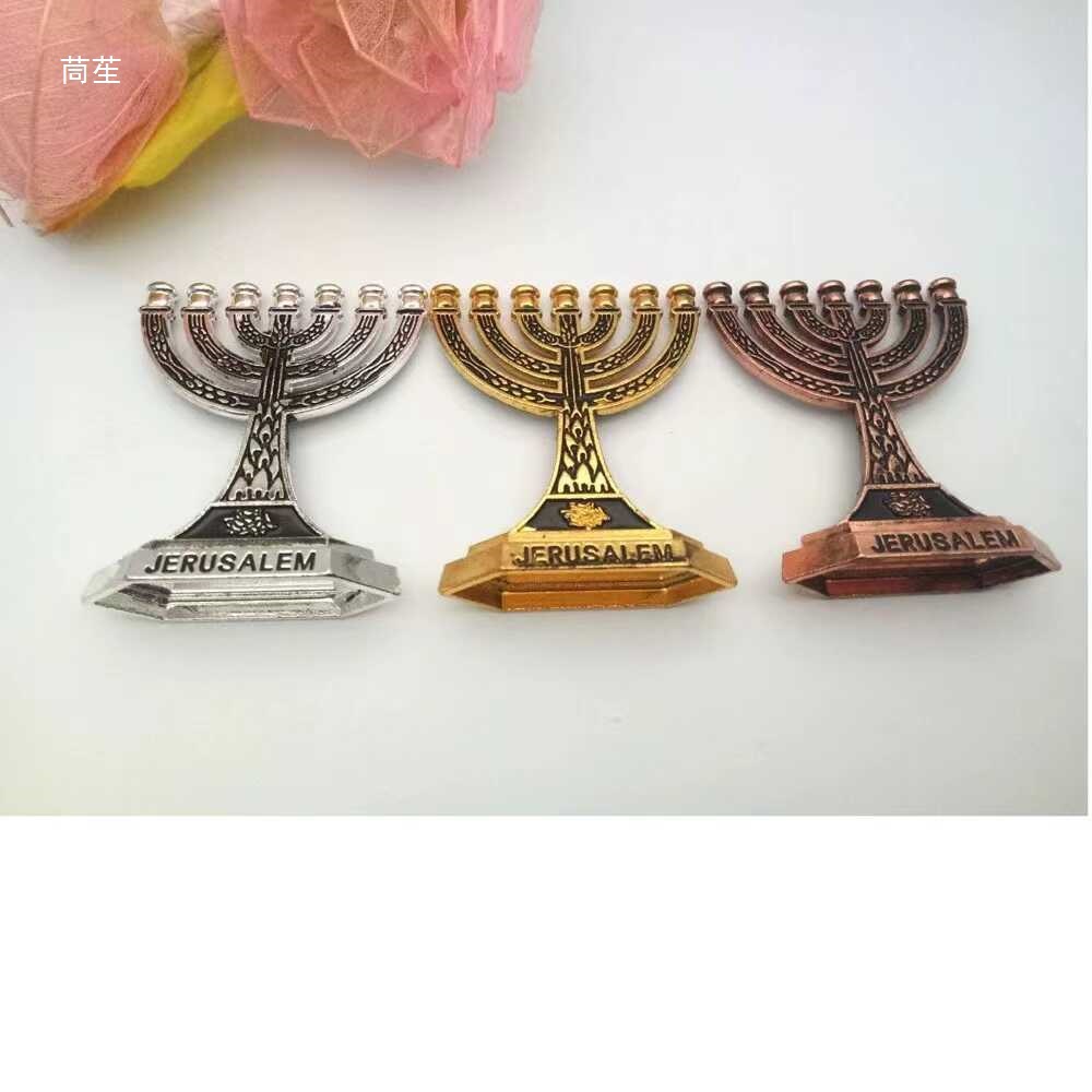 Landelaria de oro judía israelí candelabros de metal artesanía iglesia decoración de candelabros siete cabezas