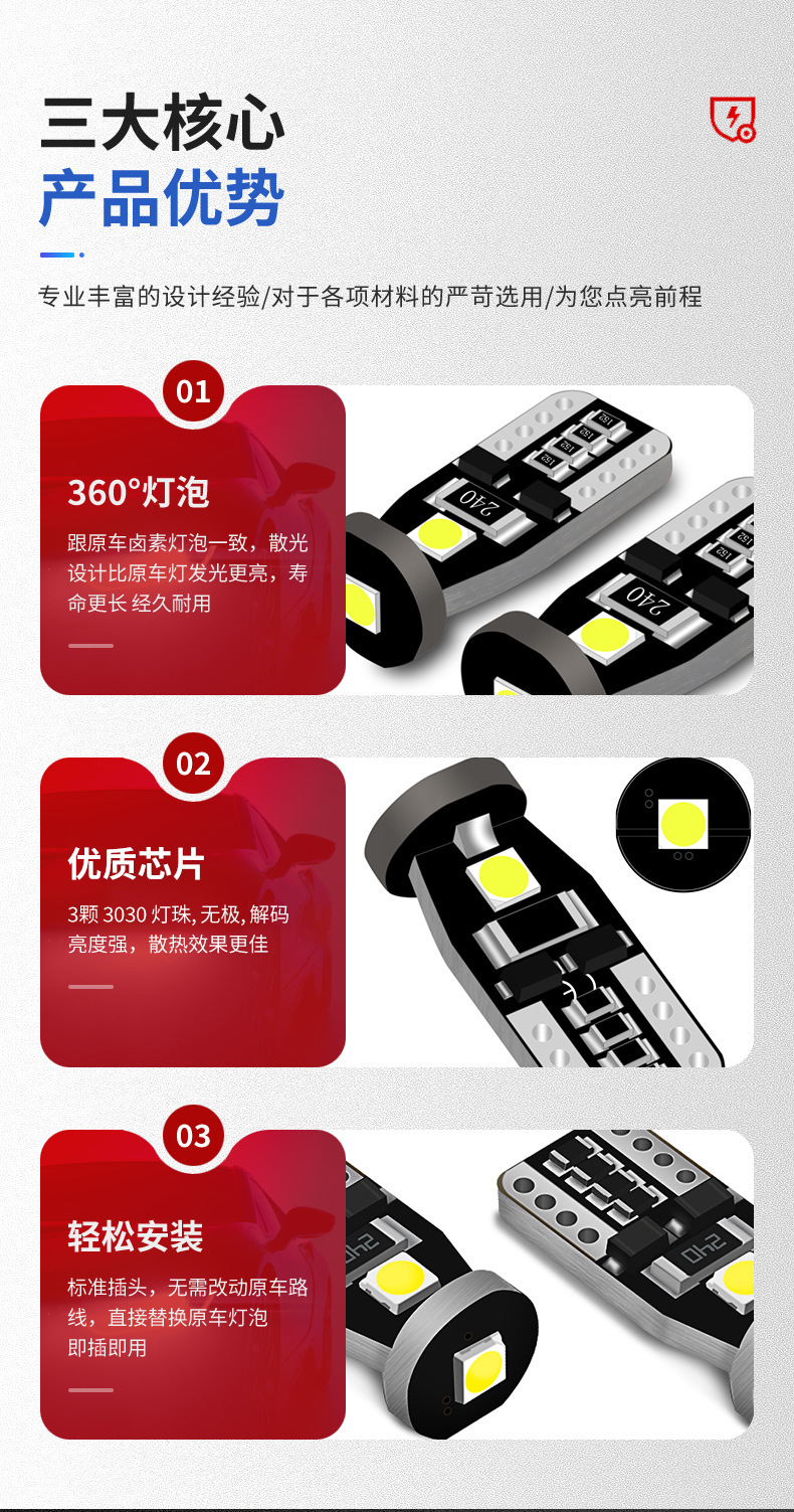 | Ámbito principal de aplicación | Luz de mapa, luz de matrícula, luz de maletero, marca lateral, luz de marcha atrás, etiqueta de puerta lateral, luz de carga, luz de cúpula |
