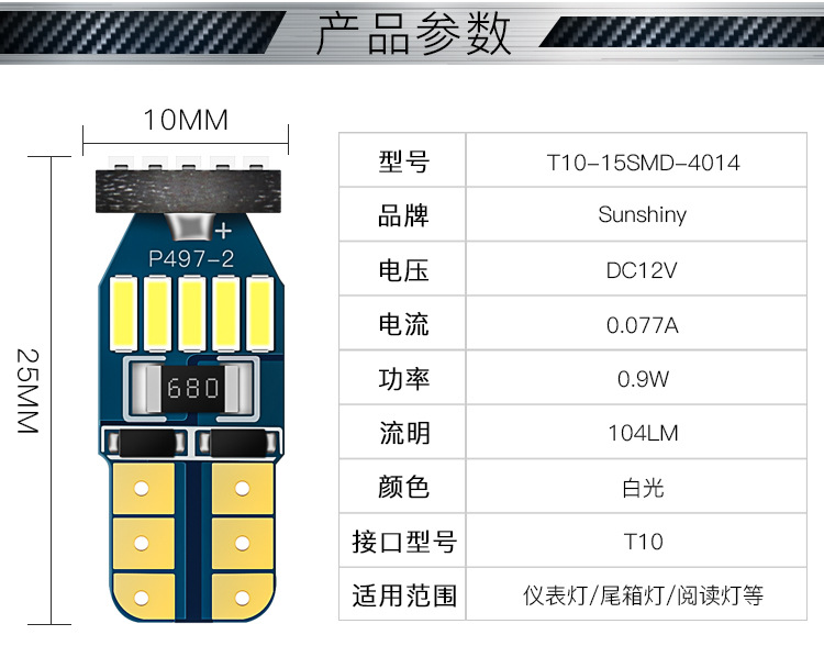| Ámbito principal de aplicación | Luz de anchura de luz de instrumento luz de techo luz de matrícula Luz de tronco Luz de contorno |