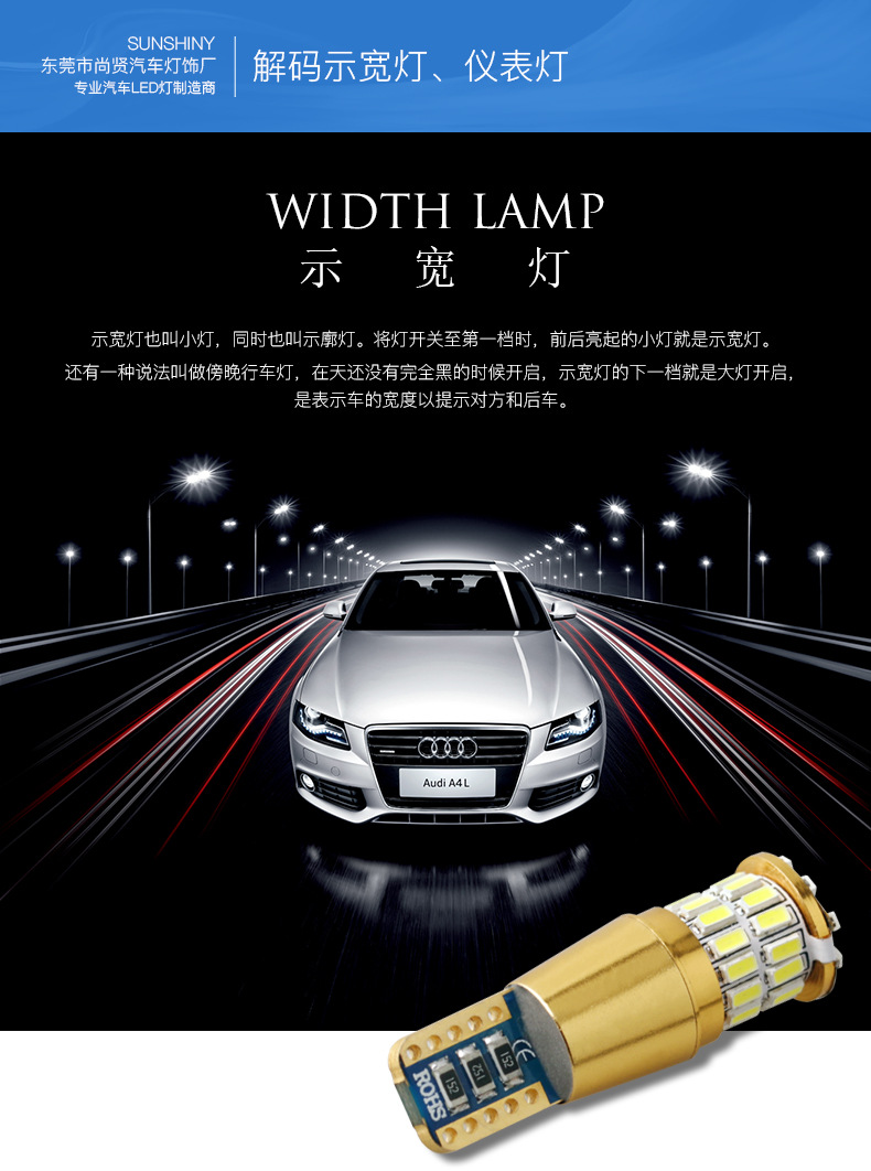 | Ámbito principal de aplicación | Luz de la anchura del coche |