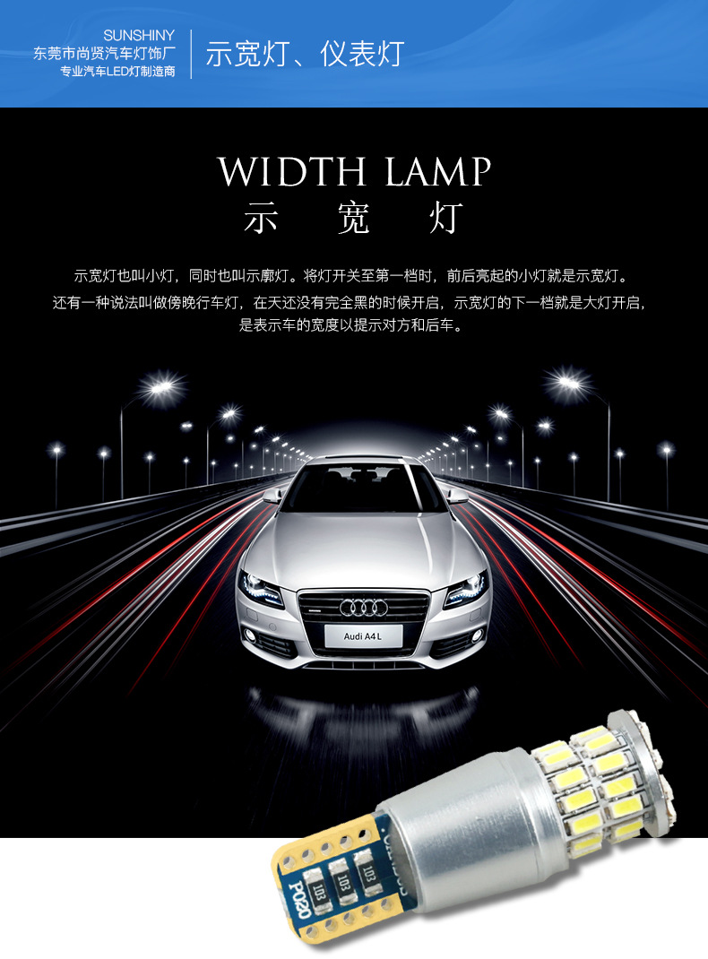 | Ámbito principal de aplicación | Luz de la anchura del coche luz del instrumento Luz de marcha diurna luz de la puerta luz interior luz de la matrícula luz de giro y otra modificación de iluminación del coche |