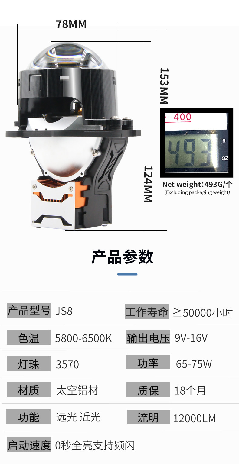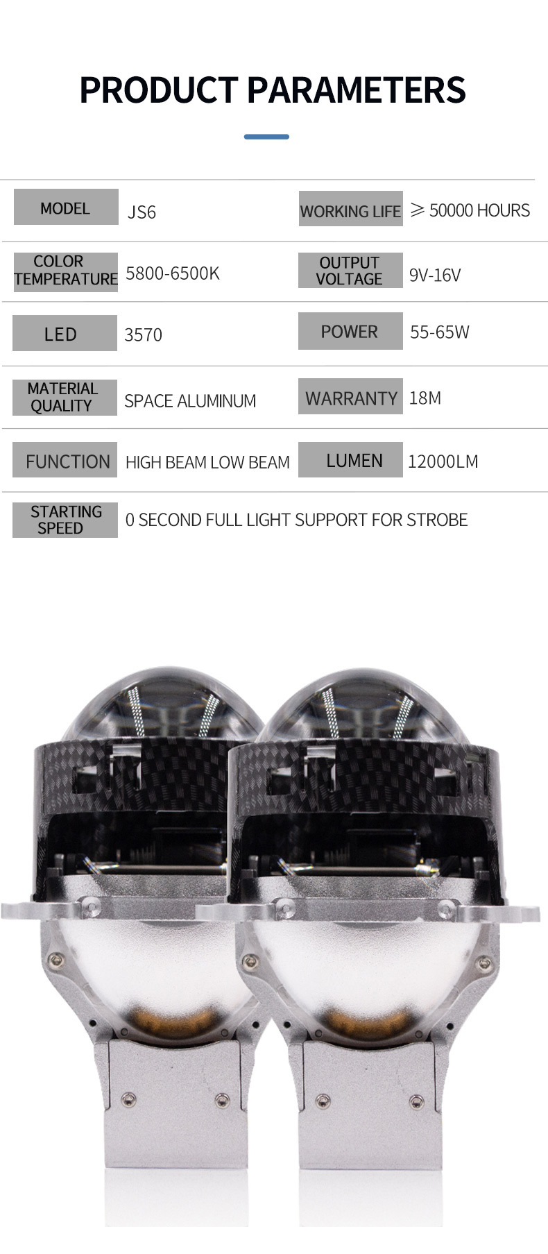| Color | Lente prisma JS8e 75W 3,0 pulgadas,Lente prisma JS7e 75W 3,0 pulgadas,JS6e Lente de 3 copas 75W 3,0 pulgadas |