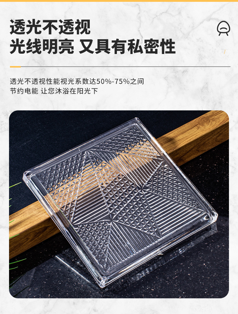 Ladrillo de vidrio, ladrillo de cristal, pared de partición, pantalla de ladrillo translúcido ultra blanco, pared de vidrio hueco sólido de color transparente para baño