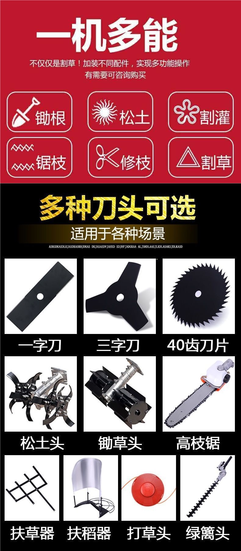 | Especificaciones del producto | Dos tiempos colgantes laterales precios especiales sin garantía [sin regalo], dos tiempos colgantes laterales estándar, cuatro tiempos colgantes laterales máquina completa + regalo, cuatro tiempos colgantes laterales + regalo, cuatro tiempos colgantes laterales máquina completa + regalo + grasa, cuatro tiempos colgantes laterales máquina completa + regalo + grasa, cuatro tiempos colgantes laterales laterales Máquina completa de mochila de cuatro tiempos + regalo de lujo + conjunto de suelo suelto, máquina completa de mochila de cuatro tiempos + regalo de lujo + suelo suelto de azada, máquina completa de mochila de cuatro tiempos + regalo de lujo + suelo suelto de azada + hierba y arroz, máquina completa de mochila de cuatro tiempos + regalo de lujo + cabeza de bomba de agua + sierra de rama alta, máquina completa de mochila de cuatro tiempos + regalo de lujo + suelo suelto de azada y zanja, máquina completa de mochila de cuatro tiempos + tierra suelta de azada y zanja para hierba y arroz |