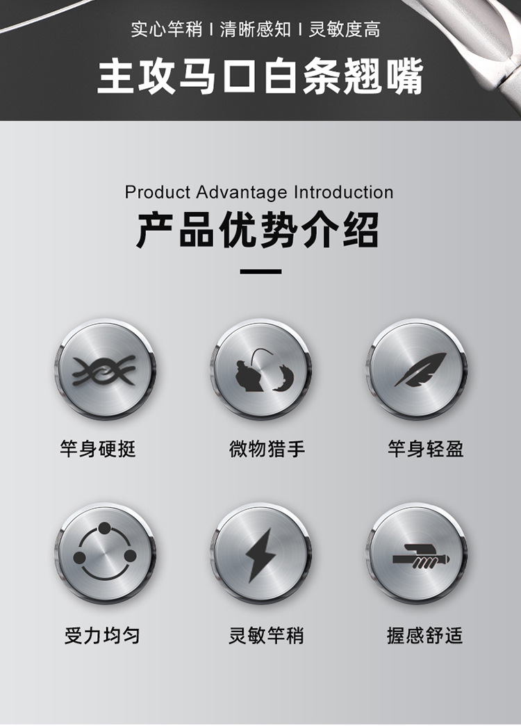 Fábrica al por mayor Weiwu Luya bastón Carbon Uul Super suave Caballo de boca de caballo Caña de lanzamiento de largo alcance Caña de pescar Pollo de plata Luya