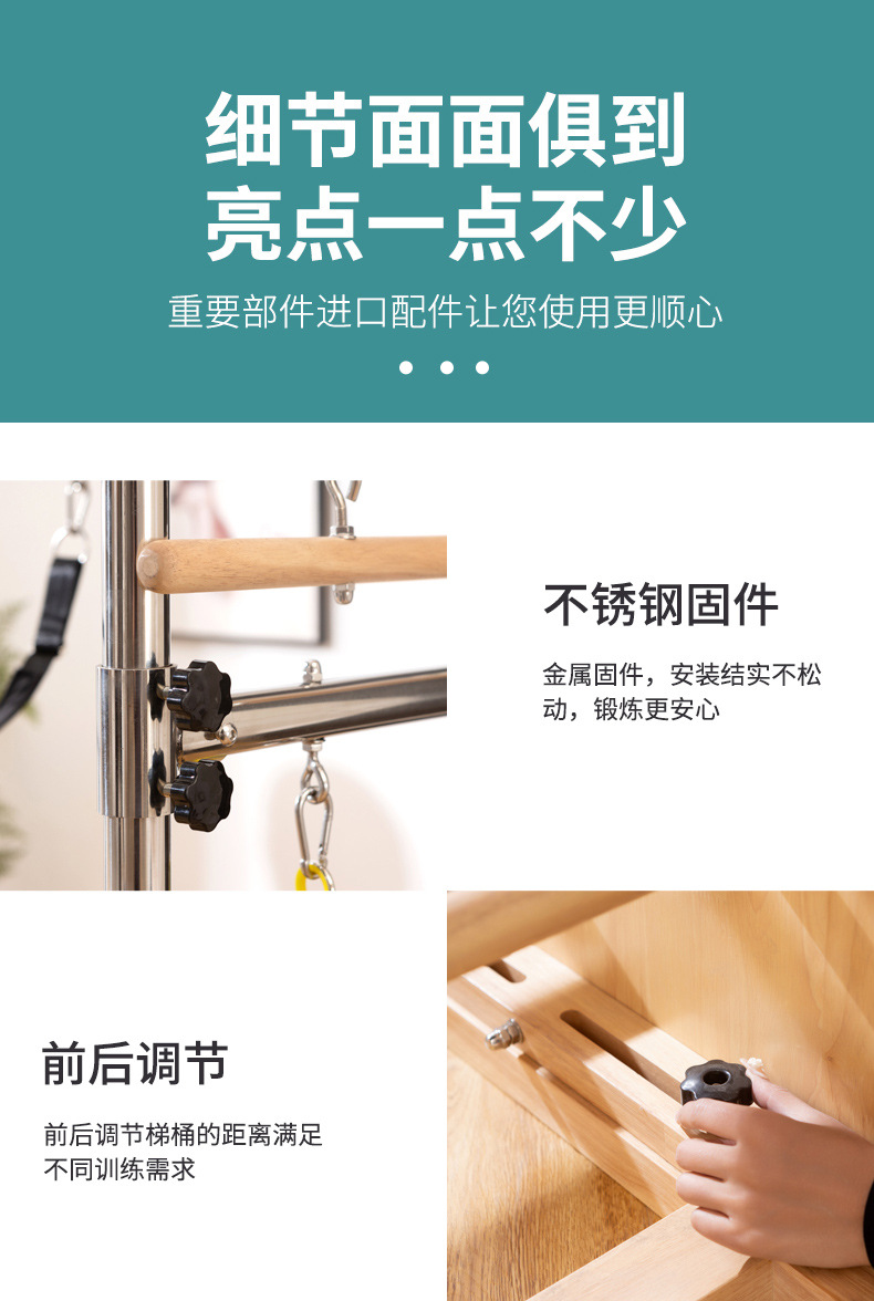 | Especificaciones | 01 cama central - modelo australiano - roble - resorte doméstico - puja - riel de acero inoxidable - barra de acero inoxidable, 02 cama central - modelo australiano - roble - resorte importado - superfiber - riel de acero inoxidable - barra de acero inoxidable, cama Cadillac de roble base (resorte doméstico, cuero PU), cama Cadillac de roble actualizada (resorte coreano, cuero ultrafiber), escalera de roble básica (cuero PU), escalera de roble actualizada (cuero ultrafiber), asiento de roble básica (resorte doméstico, cuero PU), asiento de roble actualizado (resorte importado, cuero ultrafiber), aparato de roble básico (cuero PU), aparato de roble actualizado (cuero ultrafiber) |