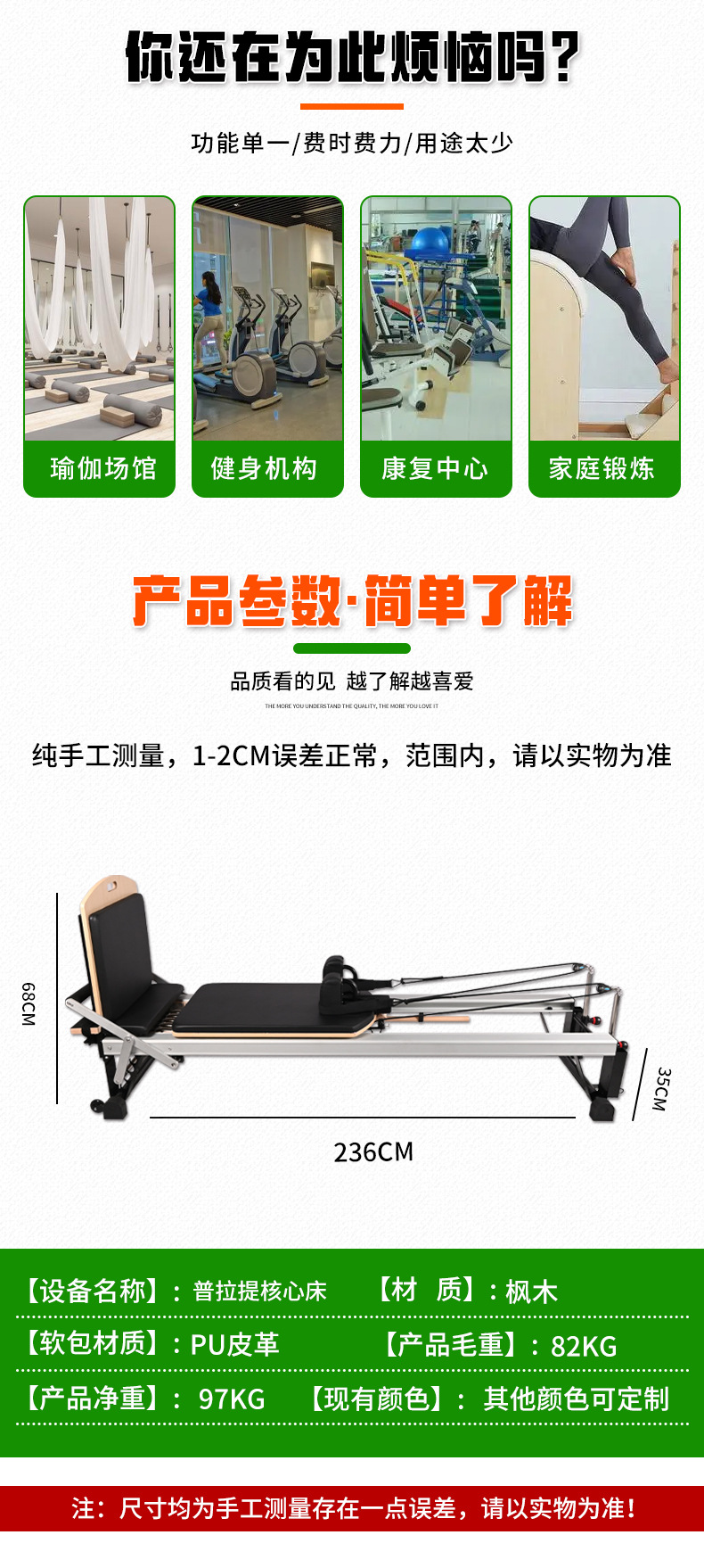 Maisheng Pilates equipo grande núcleo plegable estudio de yoga en casa educación privada equipo de fitness almacenamiento de madera cama corredera