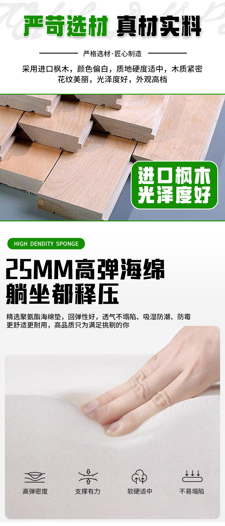 Cama central de Manlicue (primales de acero de piano + cuero de fibra), base de medio elevación (primales de acero de piano + cuero de fibra)