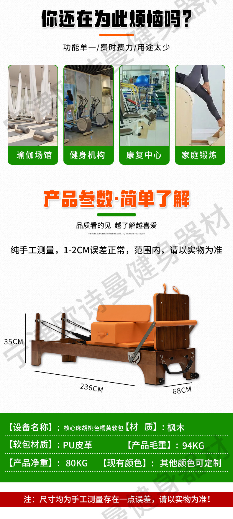 Fabricantes de camas de Pilates, gimnasio de Pilates, camas de entrenamiento de yoga de forma privada, camas de núcleo de nuez