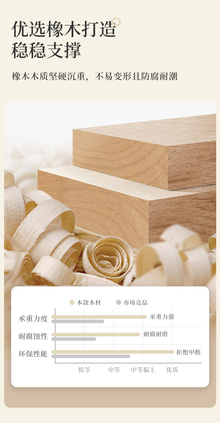 | Especificaciones | Modelo básico de cama central de roble, modelo alto de cama central de roble, modelo de élite de cama central de roble |